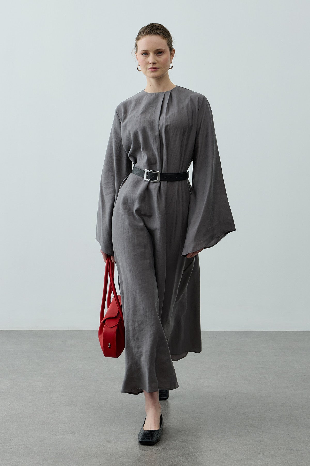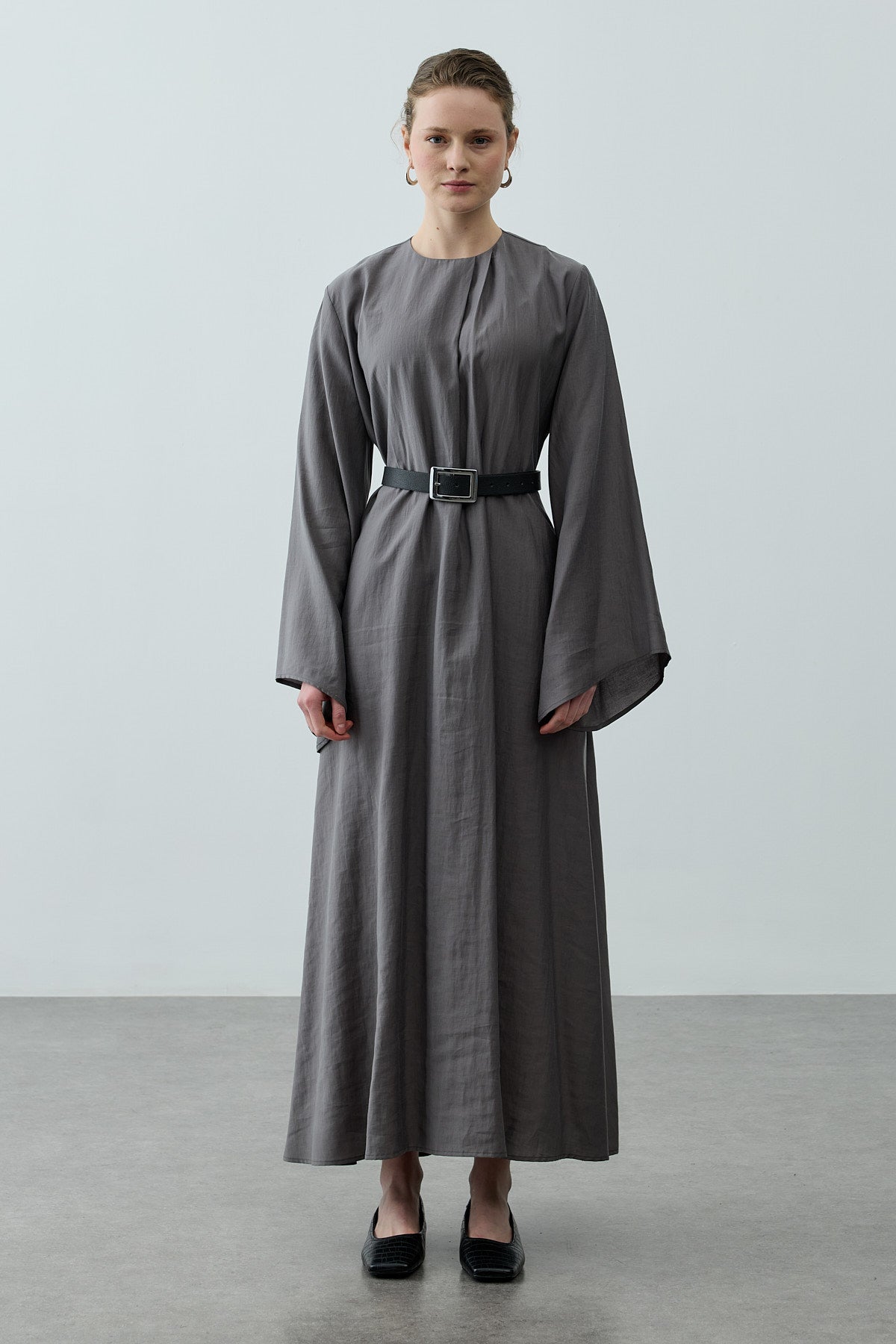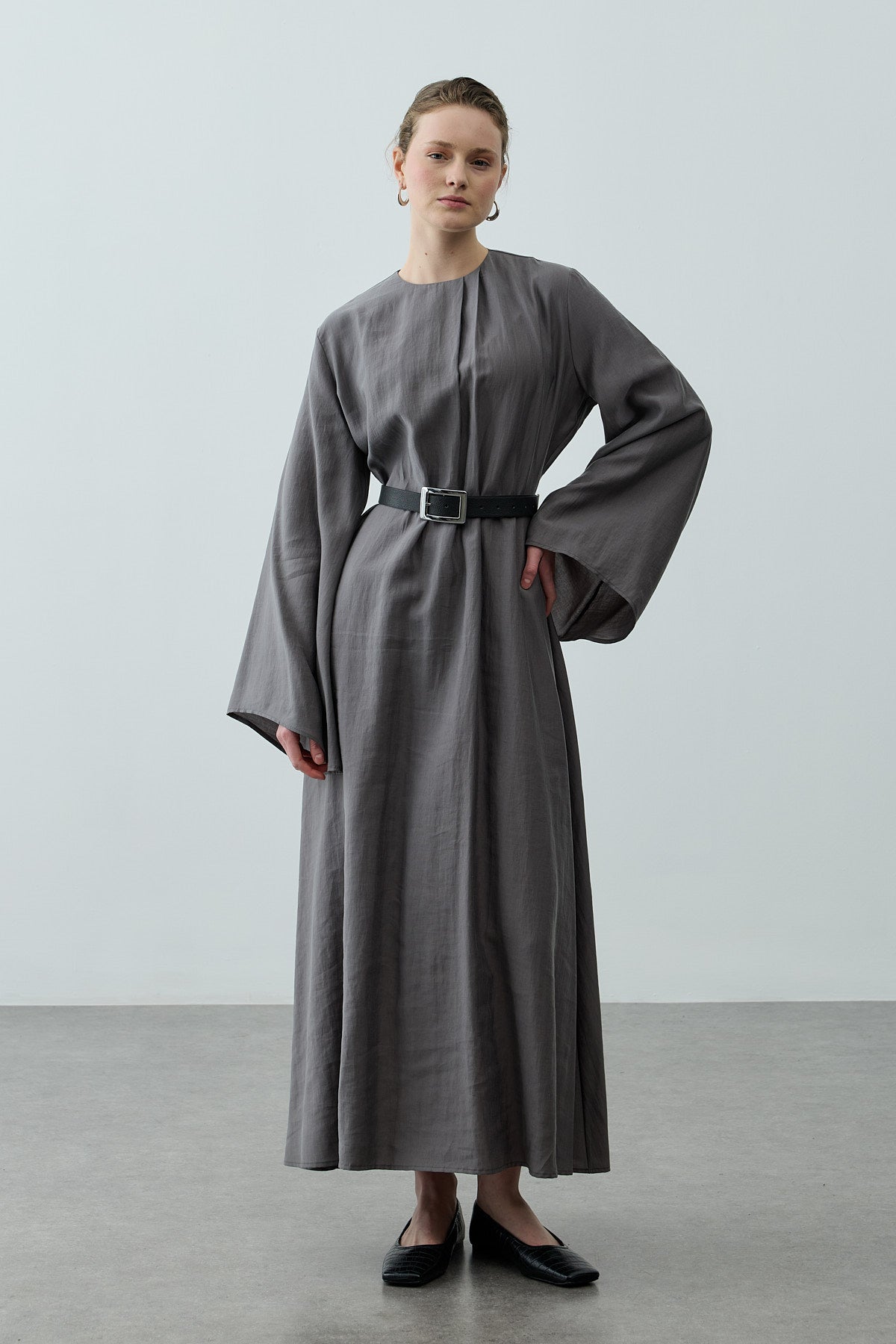Pileli Tensel Elbise Antrasit