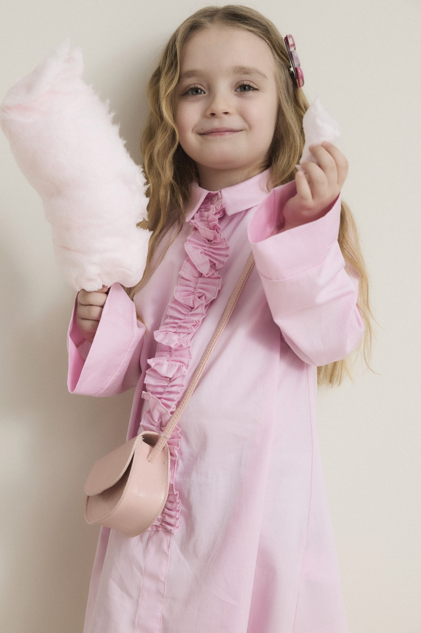 Pilise Detaylı Compact Saten Pamuklu Çocuk Elbise – Pembe