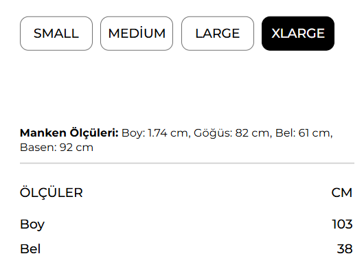 Mankenin Giydiği Beden: S Beden
