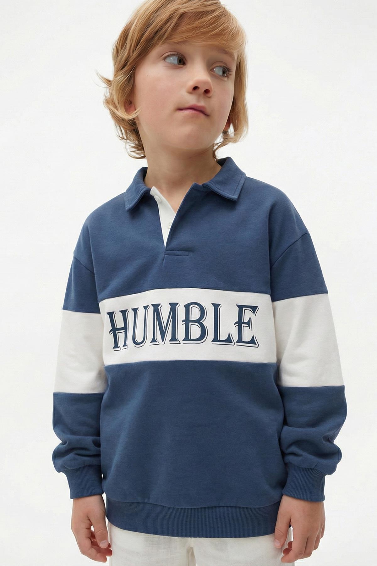 Polo Yaka Baskılı Sweatshirt 4-12 Yaş Lacivert