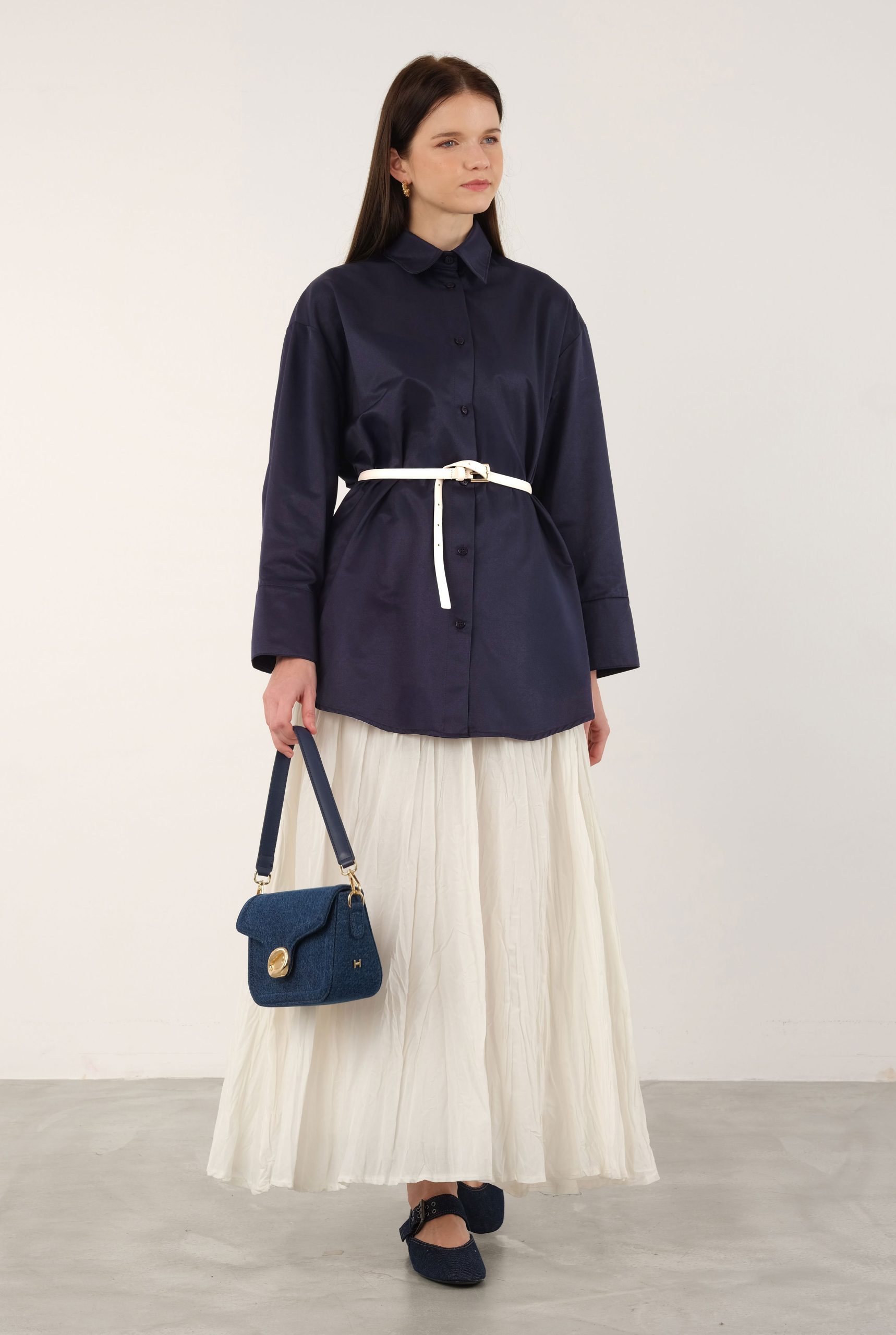 %50 Pamuk ve %50 Polyester karışımlı kumaştan önü düğmeli, yakalı, kısa gömlek. Kol ucu manşetli ve düğmeli, düşük omuzlu, arkası robalı. KEMER ÜRÜNE DAHİL DEĞİLDİR. Boy: 83 cm (Ürün boyu üretimler arası 1-5 cm değişebilir.) Kalıp Bilgisi: Göğüs Basen Pazu 36 Beden: 106 cm 120 cm 47 cm 38 Beden: 110 cm 124 cm 49 cm 40 Beden: 114 cm 128 cm 51 cm 42 Beden: 118 cm 132 cm 53 cm Manken Ölçüleri: Boy: 174 cm Göğüs: 84 cm Bel: 60 cm Basen: 89 cm Manken Üzerindeki Beden: 36