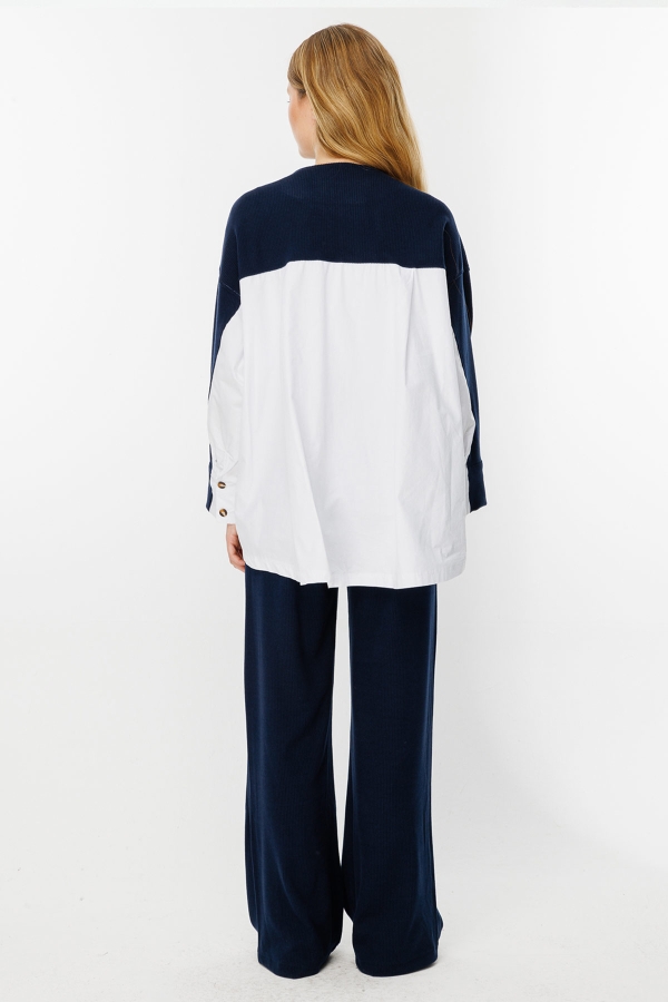 Poplin Triko Hırka Detaylı Lacivert Pantolon Takım