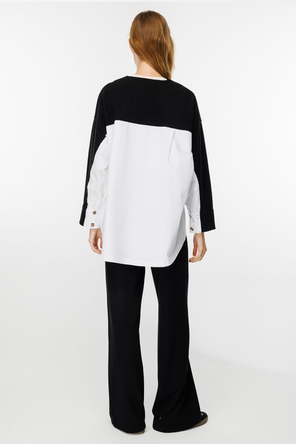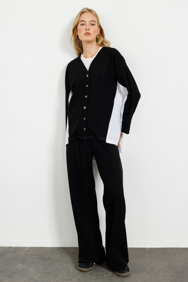 Poplin Triko Hırka Detaylı Siyah Pantolon Takım