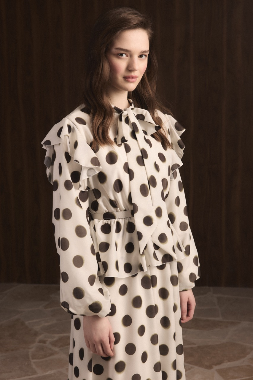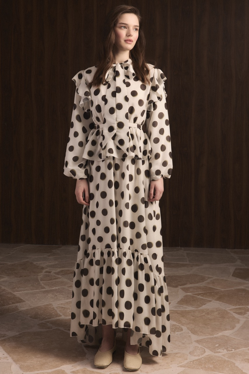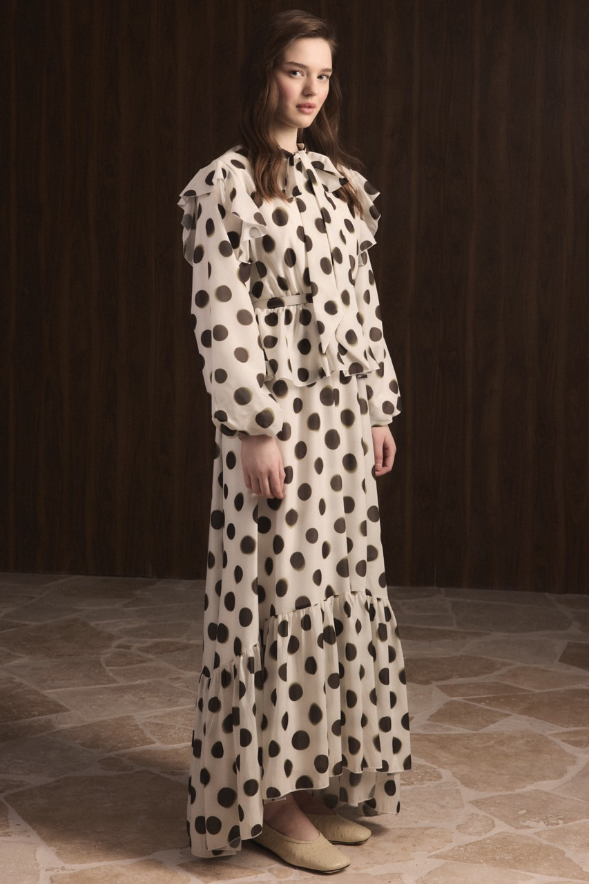 Puantiyeli Etek Fırfırlı Elbise – Haki