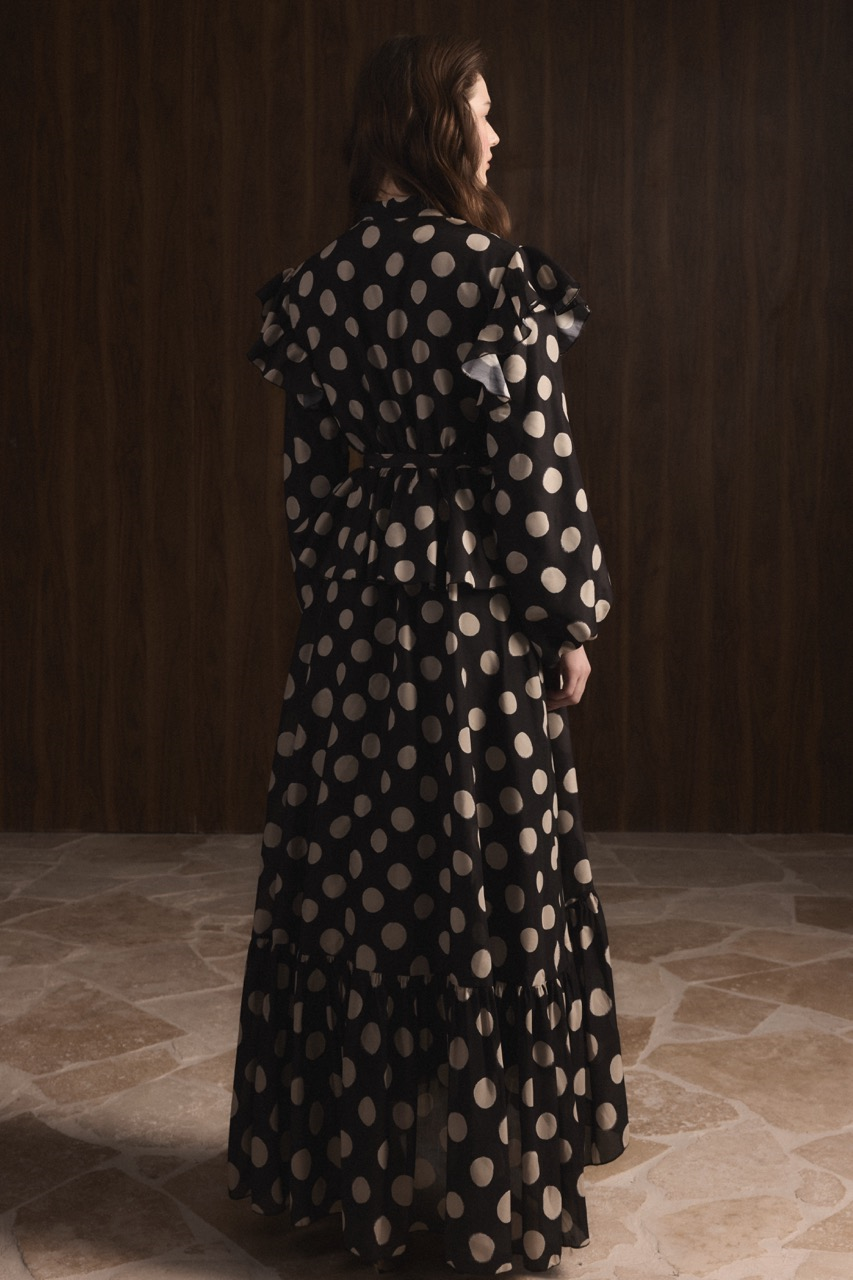 Puantiyeli Etek Fırfırlı Elbise – Siyah