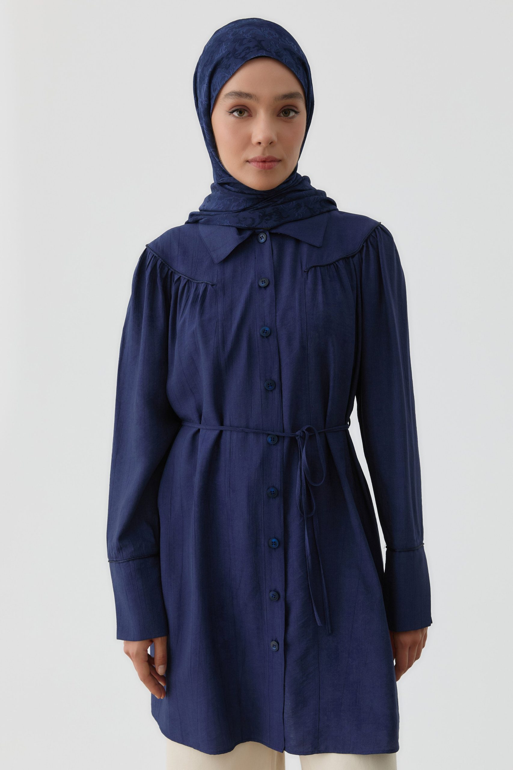 Robalı Büzgülü Tunik – Lacivert