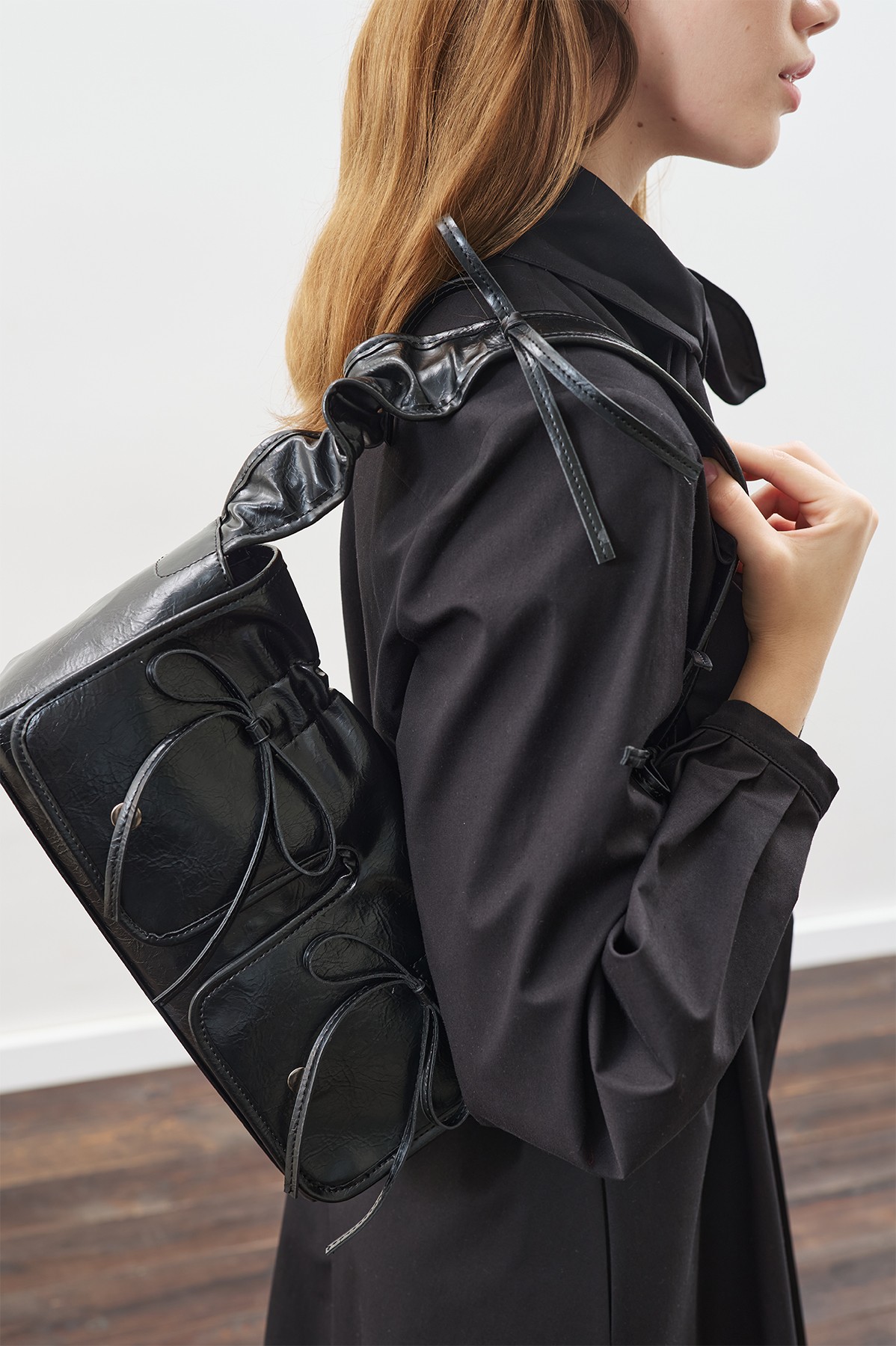 Orta boy, kurdele detaylı çanta, içte cep detaylı, mıknatıs kapama, suni deri, astarlı.