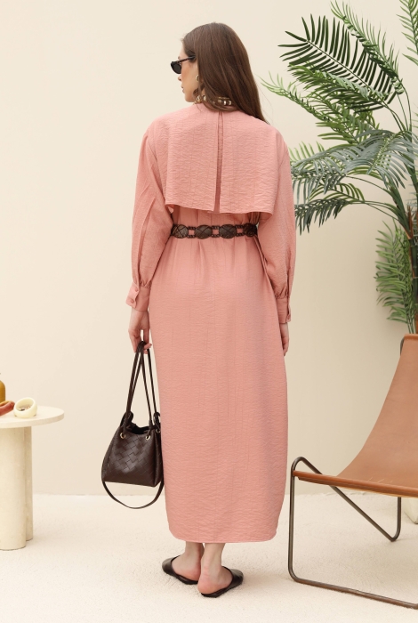 Kemerli ve ceplidir. Astarsızdır, iç göstermez. Renk: Kiremit Mevsim: Kışlık – Baharlık İçerik: %100 Pamuk Hafif bol kalıptır. Ceplidir. Kemerlidir. Boy: ortalama 135 cm Beden seçenekleri: S beden (34-36 uyumlu, göğüs: ortalama 112 cm) M beden (38-40 uyumlu) L beden (42-44 uyumlu) Not: Verilen ölçüler en küçük bedene aittir, bedenler arasında ortalama 4 cm fark bulunmaktadır. Manken boyu: 1.75 m Mankenin üzerindeki beden S bedendir. Hassas yıkama programında en fazla 30 derecede yıkanması gerekmektedir.