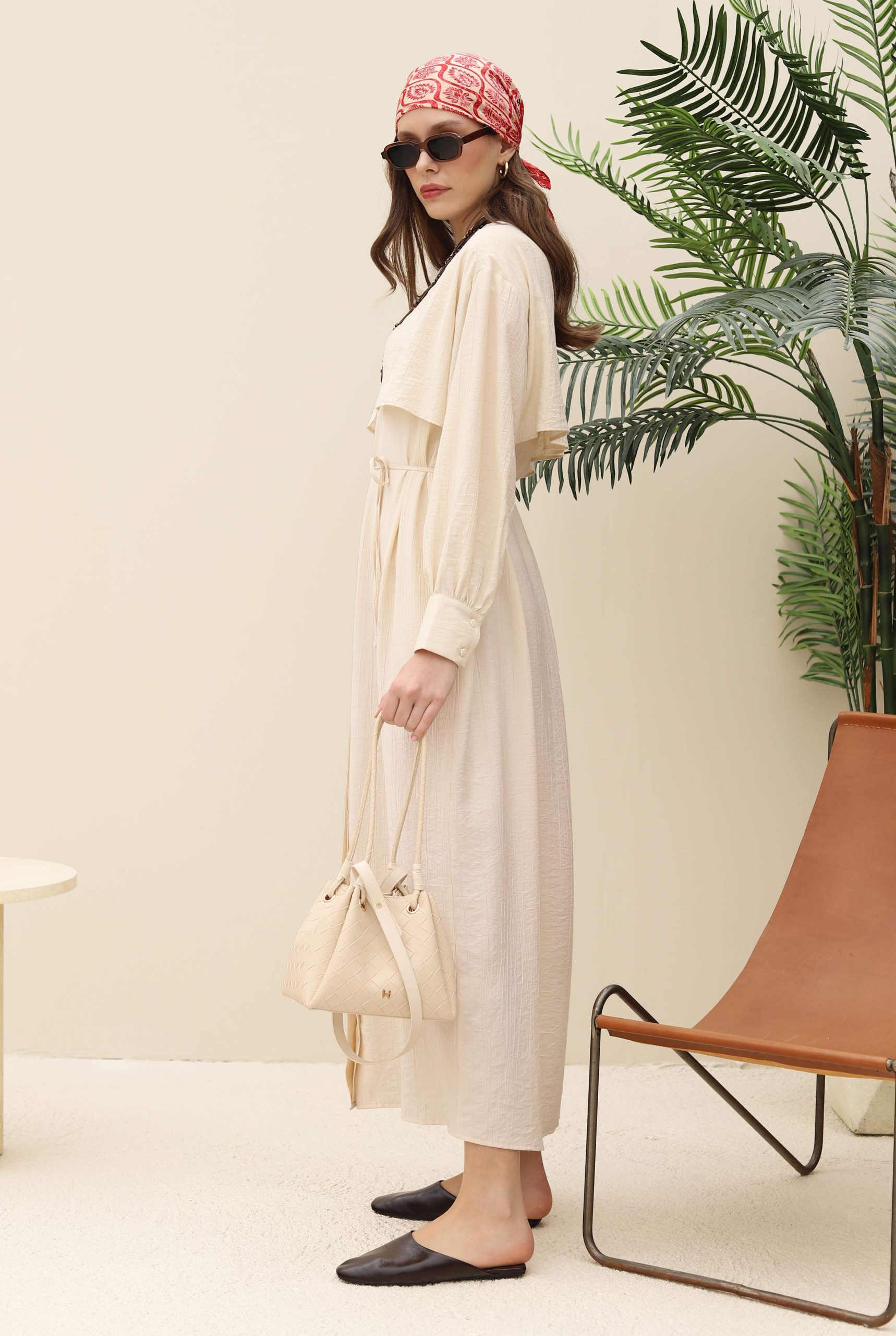 %85 Rayon ve %15 Poliamid karışımlı kumaştan üretilmiştir. Bu üründe kullanılan Rayon iplik, genellikle kayın, okaliptüs ve bambu ağaçlarından elde edilir. Doğal selülozdan elde edilen yumuşak dokusu ve zarif dökümlülüğüyle dikkat çeker. Kumaşa ipeksi bir his ve nefes alabilirlik kazandırır. Kumaş karışımına %20 oranında eklettiğimiz Poliamid ise kumaşa ekstra dayanıklılık, daha az buruşma ve hafif bir parlaklık kazandırmaktadır. Ürün ölçüleri aşağıda mevcttur, sevdiğiniz bir elbisenin ölçüleriyle karşılaştırarak en doğru tercihi yapabilirsiniz. ÜRÜNÜN KENDİ KUMAŞINDAN ÜRETİLMİŞ KUŞAĞI MEVCUTTUR. Boy: 134 cm (Ürün boyu üretimler arası 1-5 cm değişebilir.)Kalıp Bilgisi: GöğüsBasenPazu36 Beden: 128 cm 130 cm 46 cm 38 Beden: 132 cm 134 cm 48 cm 40 Beden: 136 cm 138 cm 50 cm 42 Beden: 140 cm 142 cm 52 cm Manken Ölçüleri: Boy: 176 cm Göğüs: 85 cm Bel: 62 cm Basen: 92 cm Mankenin Üzerindeki Beden: 36