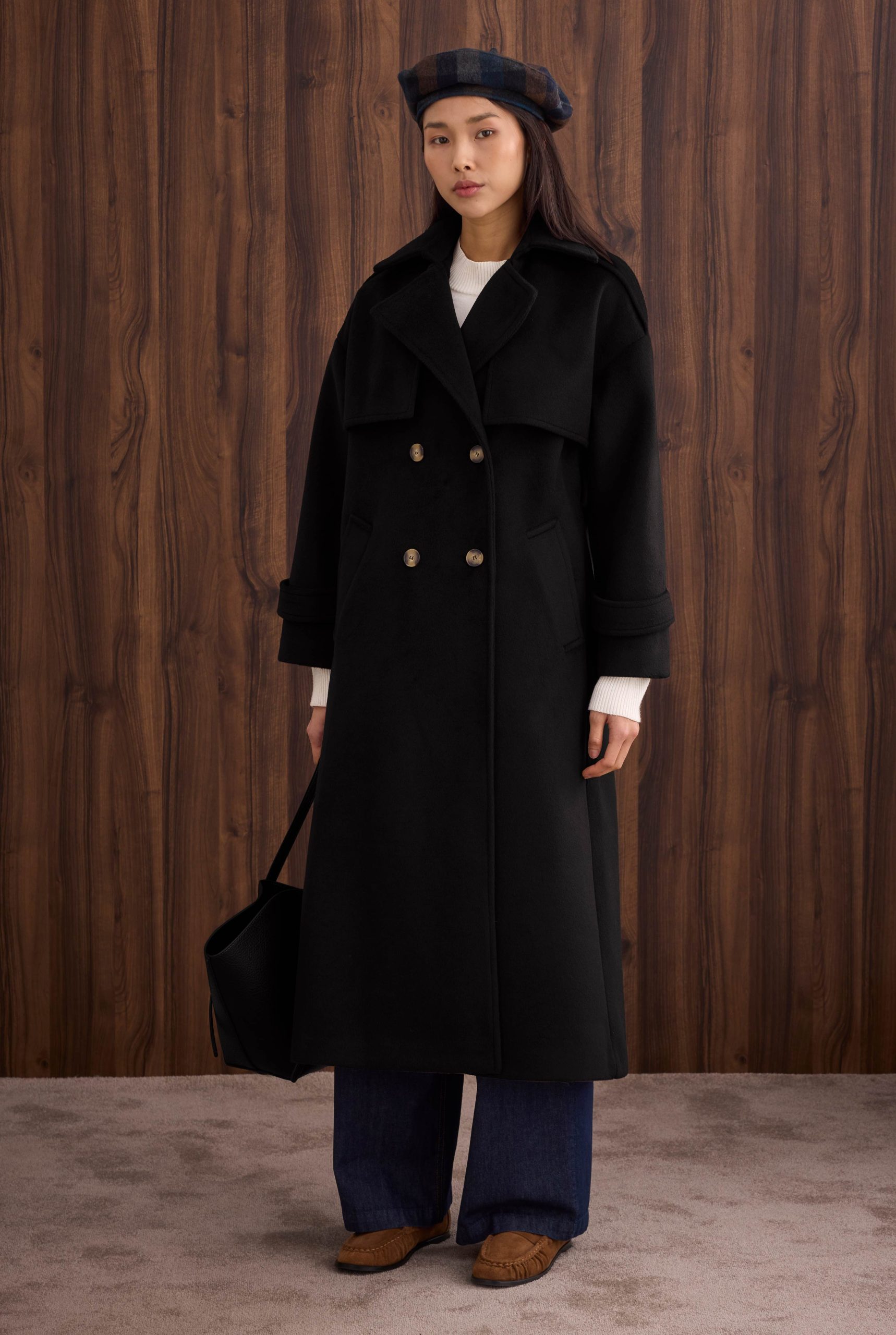 425 gr’lık kaşe kumaş içeriği sayesinde dayanıklı, formunu koruyan ve kırışmaya karşı dirençli bir yapıya sahiptir. Kaşe dokusu, sıcak tutan yapısıyla soğuk havalarda konfor sağlar. Zarif kalıbı ve kemer detayıyla feminen bir siluet sunan uzun kaban, hem günlük kullanımda hem de şehirli stillerde şık bir duruş kazandırır. Rüzgarlıklı tasarımı modele modern ve dinamik bir görünüm katarken, astarlı yapısı iç kısmın pürüzsüz durmasını ve giyimde konforu destekler. Kullanışlı detayları ve zamansız tasarımıyla gardırobun uzun yıllar keyifle kullanılabilecek parçalarındandır. Kendi bedeninizi tercih etmeniz önerilir. Bakım önerisi: Düşük ısıda ütüleyiniz. Kuru temizleme önerilir. Boy: 123 cm (Ürün boyu üretimler arası 1-5 cm değişebilir.) Kalıp Bilgisi: Göğüs Basen Kol Boyu Pazu 36 Beden: 109 cm 116 cm 48 cm 44 cm 38 Beden: 113 cm 120 cm 49 cm 46 cm 40 Beden: 117 cm 124 cm 50 cm 48 cm 42 Beden: 121 cm 128 cm 51 cm 50 cm Manken Ölçüleri: Boy: 176 cm Göğüs: 80 cm Bel: 60 cm Basen: 90 cm Mankenin Üzerindeki Beden: 36