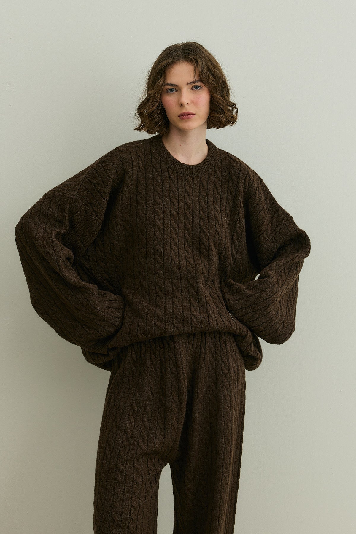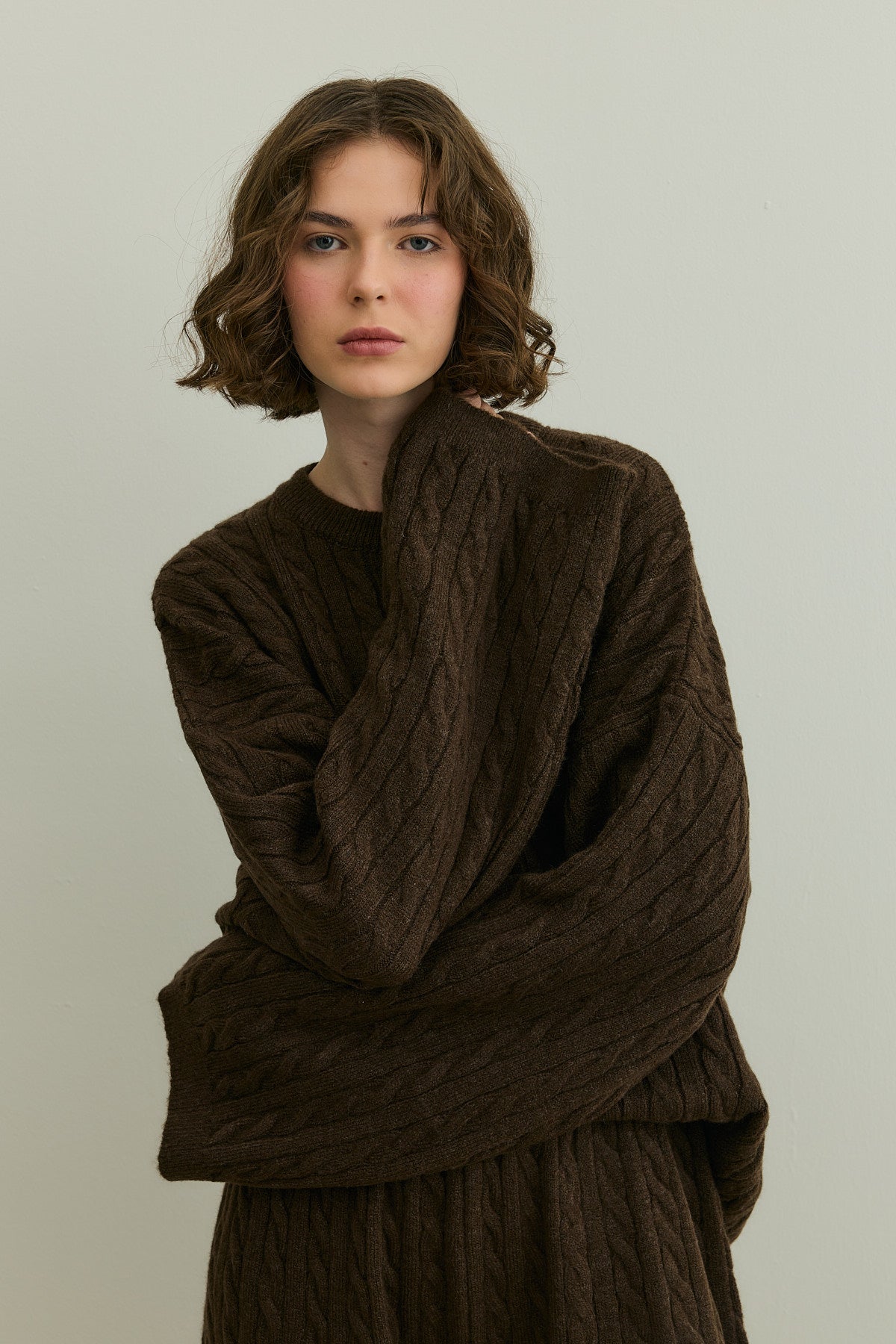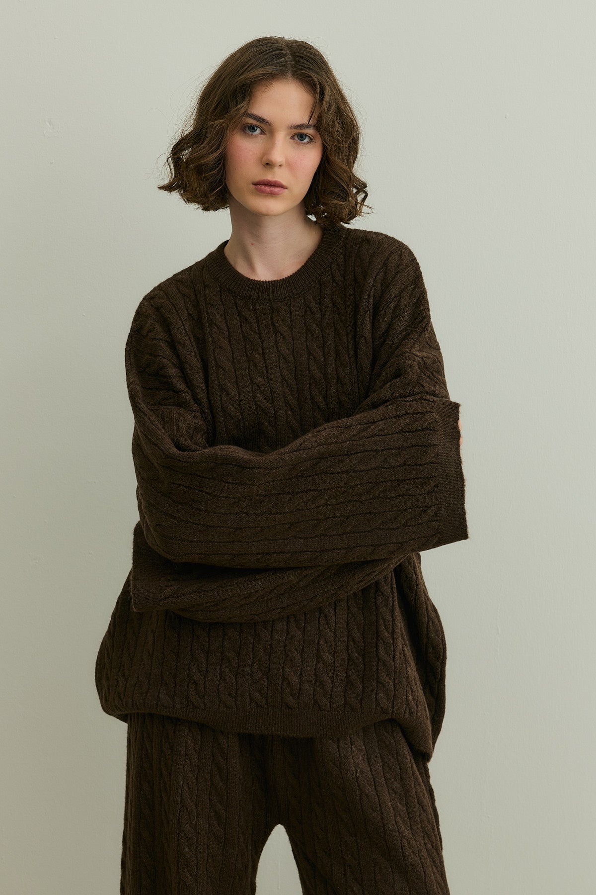 Saç Örgü Triko Takım Kahverengi