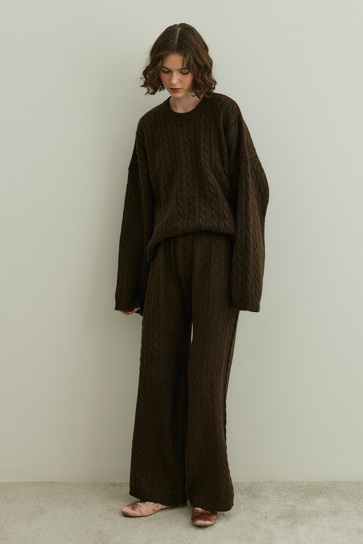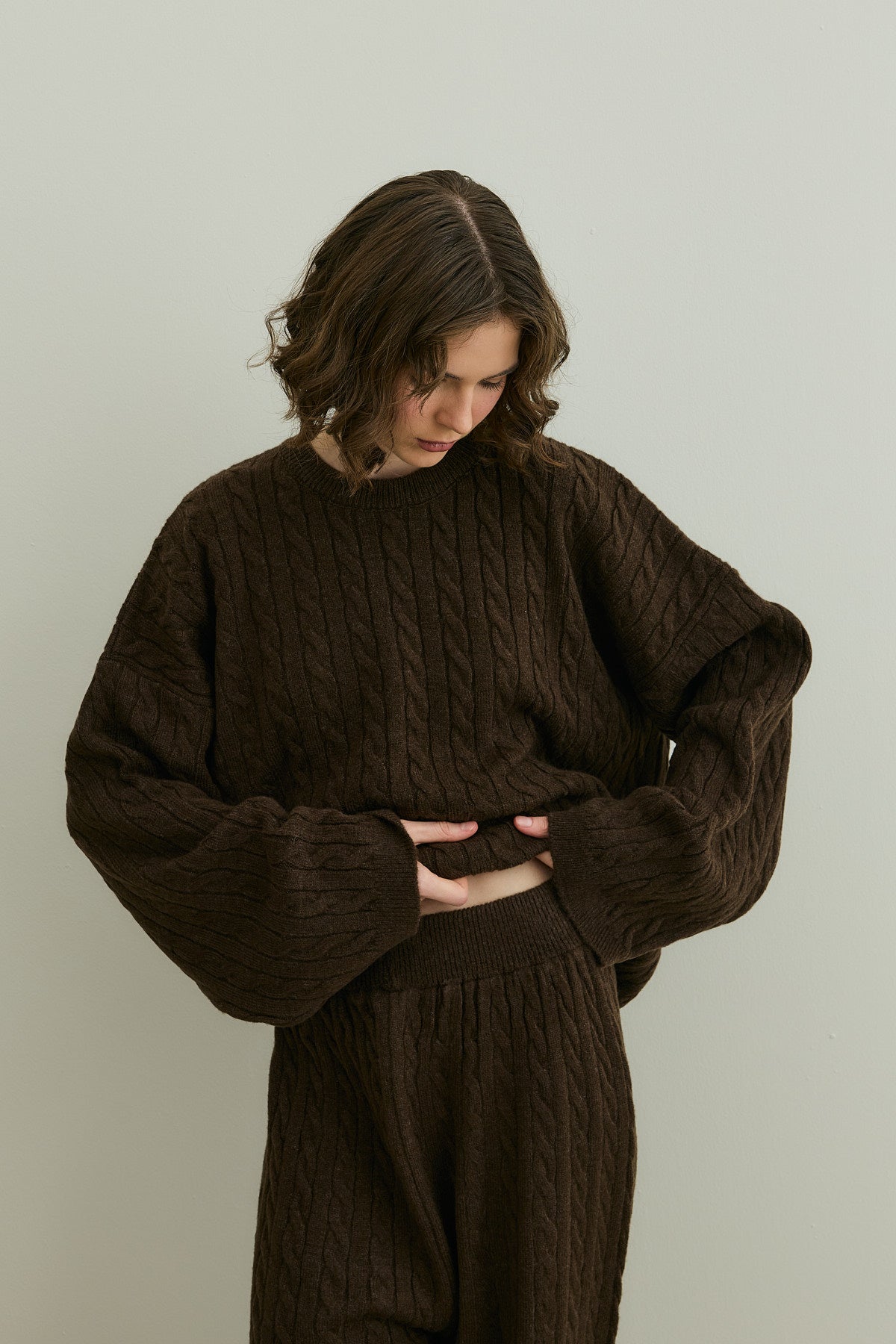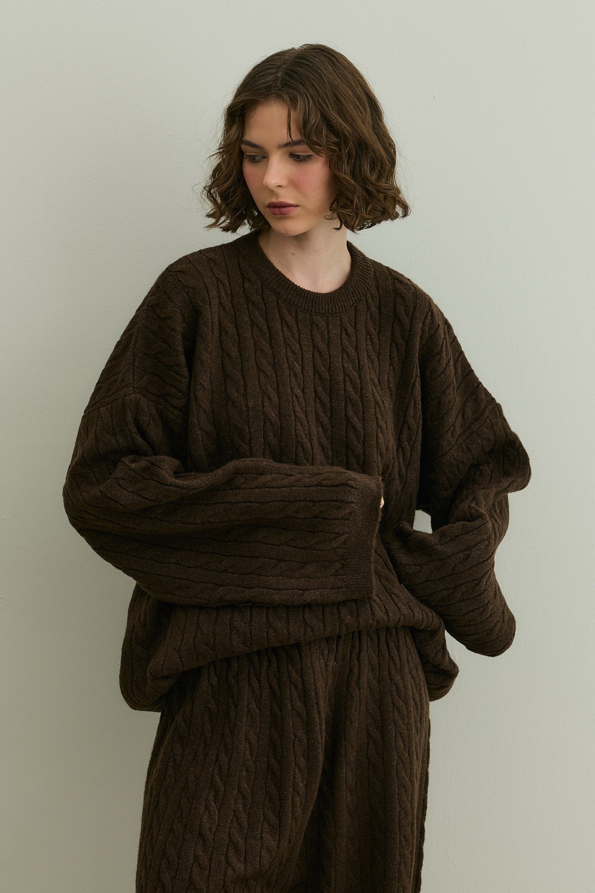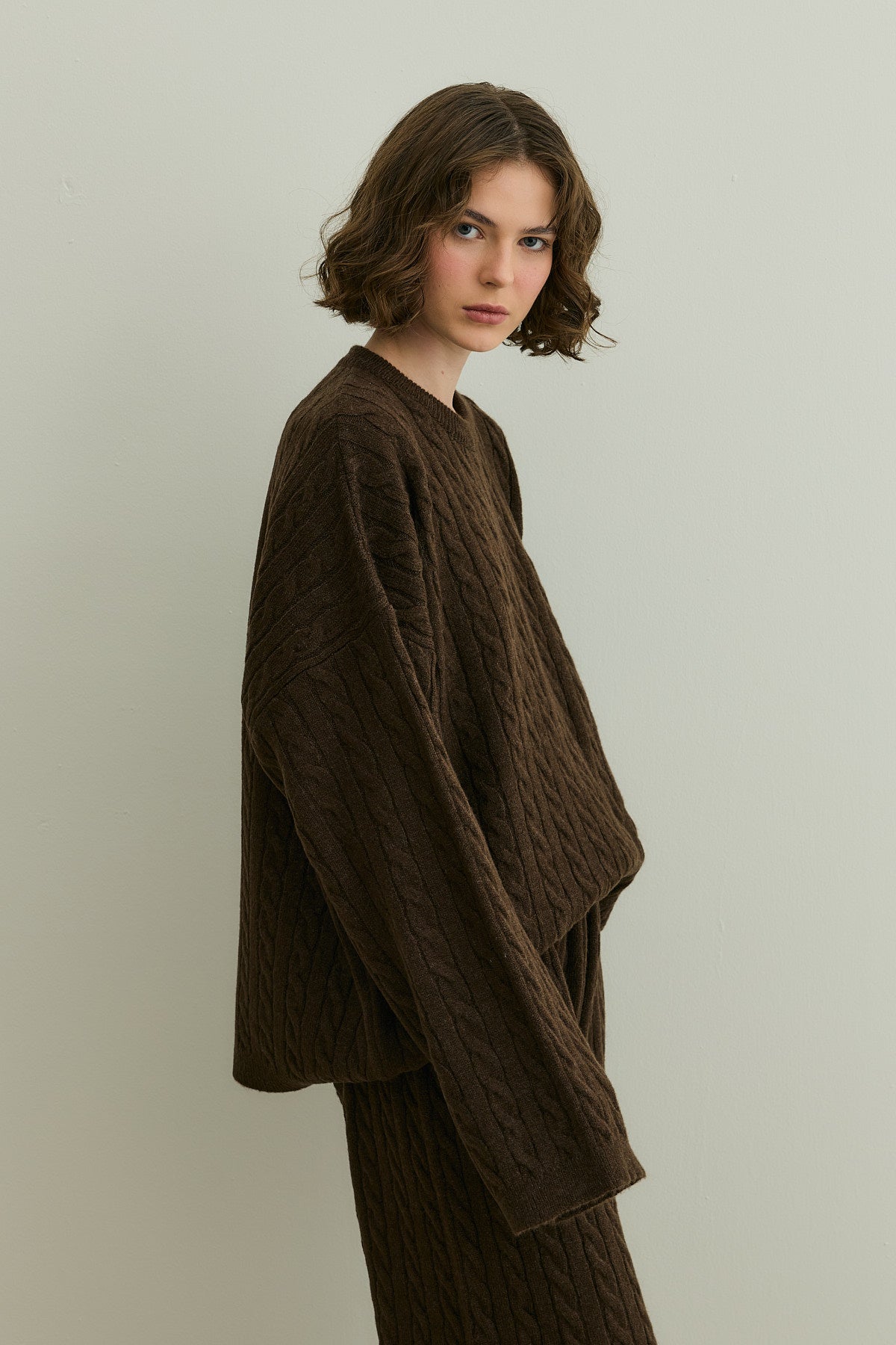 Saç Örgü Triko Takım Kahverengi