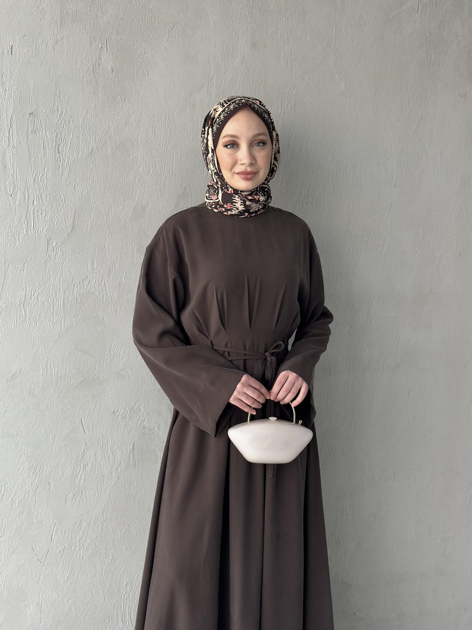 Seasons koleksiyonunun şık ve zarif bir parçası olan bu kahverengi elbise, her mevsim gardırobunuzun vazgeçilmezi olacak. Kaliteli kumaşı ve mükemmel kesimiyle rahatlık ve şıklığı bir arada sunar.