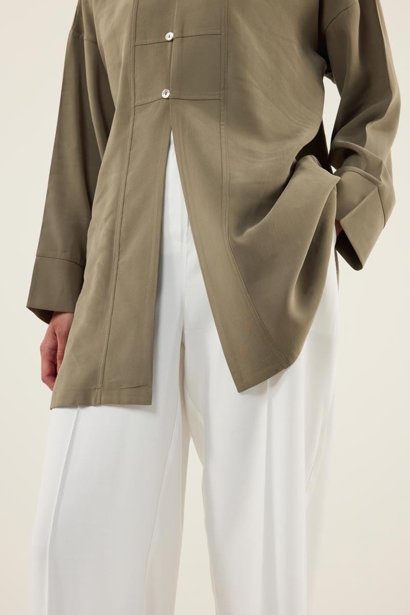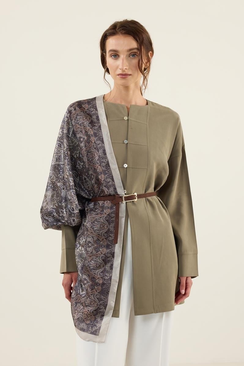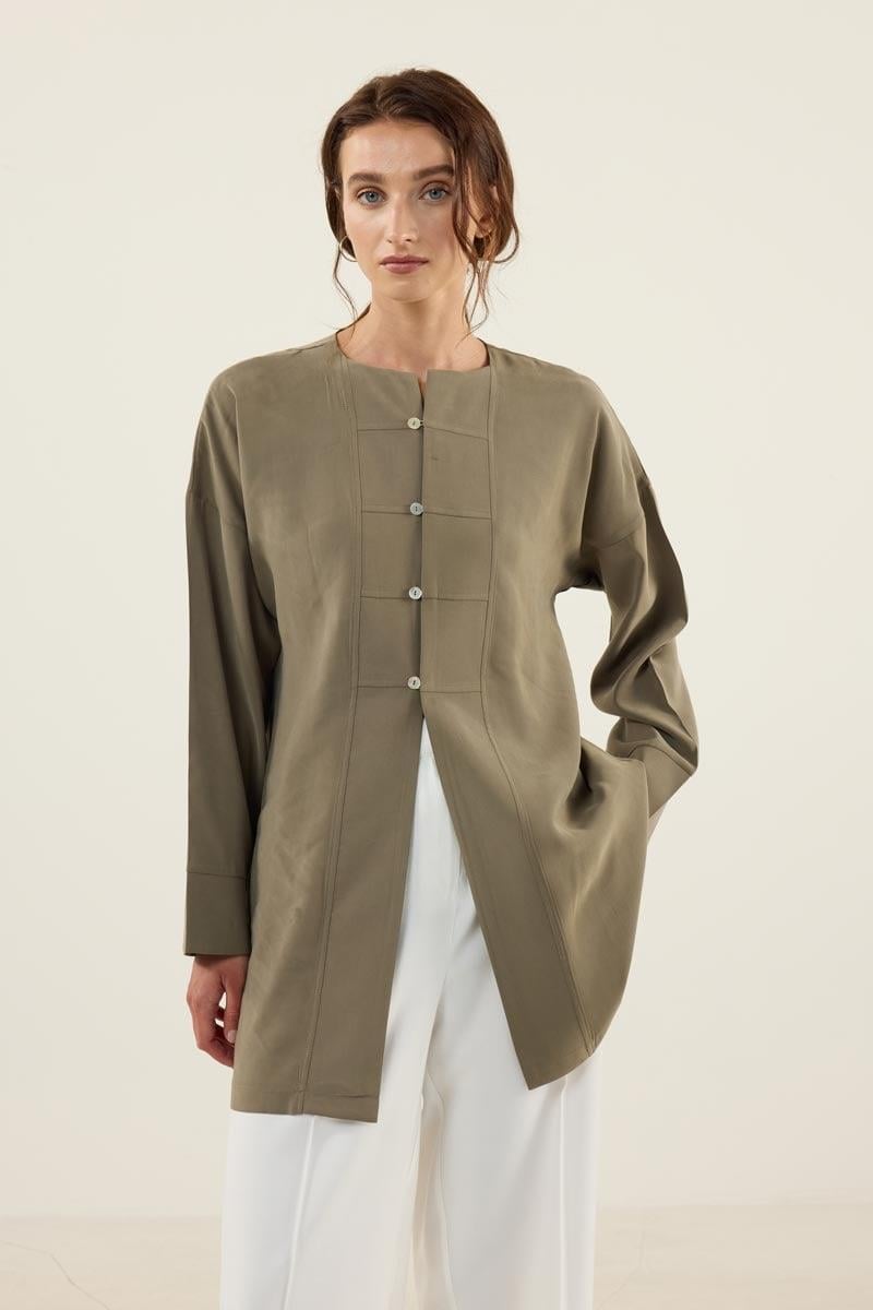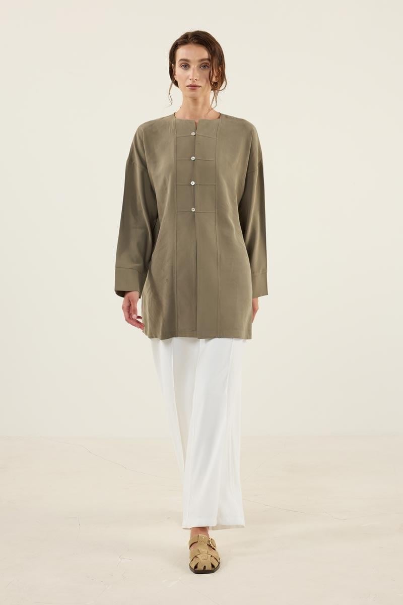 Sedef Düğmeli Modal Tunik Haki