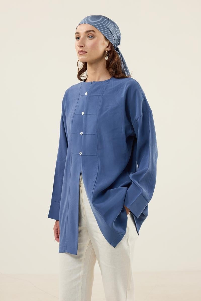 Sedef Düğmeli Modal Tunik İndigo