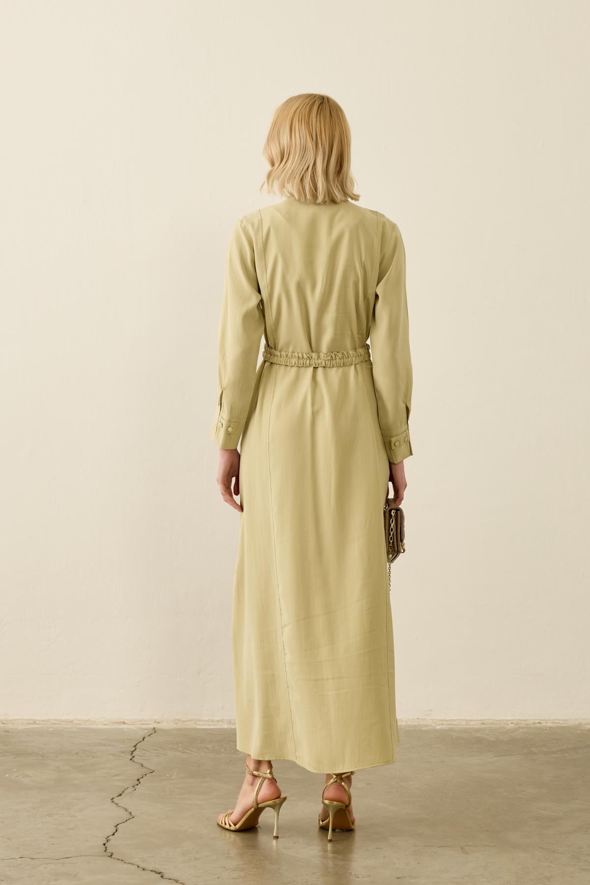 Sevi Hakim Yaka Kemerli Lastikli Modal Elbise ADAÇAYI