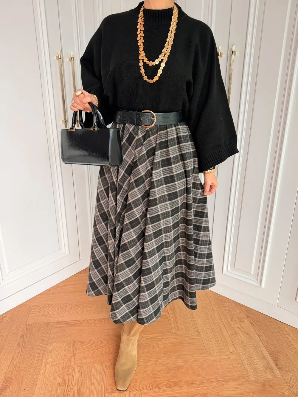 Orta bel, büzgülü, arkadan gizli fermuarlı, yanlardan cepli, premium telalanmış hacimli duran kumaştan iç belli etmeyen astarsız balon etek.