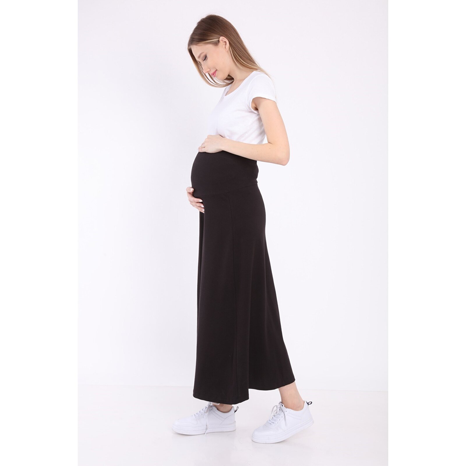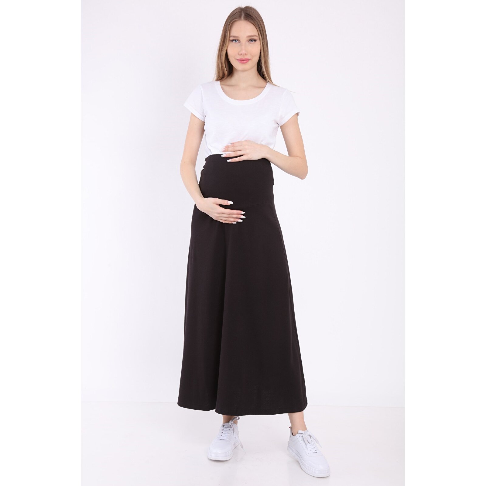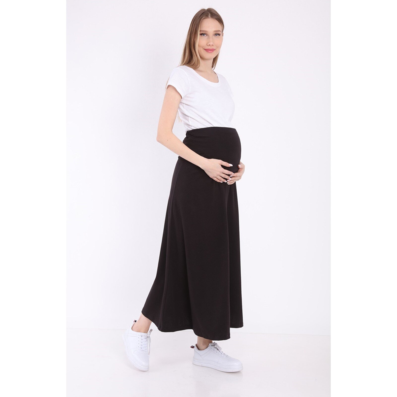 Siyah Beli Ayarlı Lastikli Kadın Uzun Hamile Etek