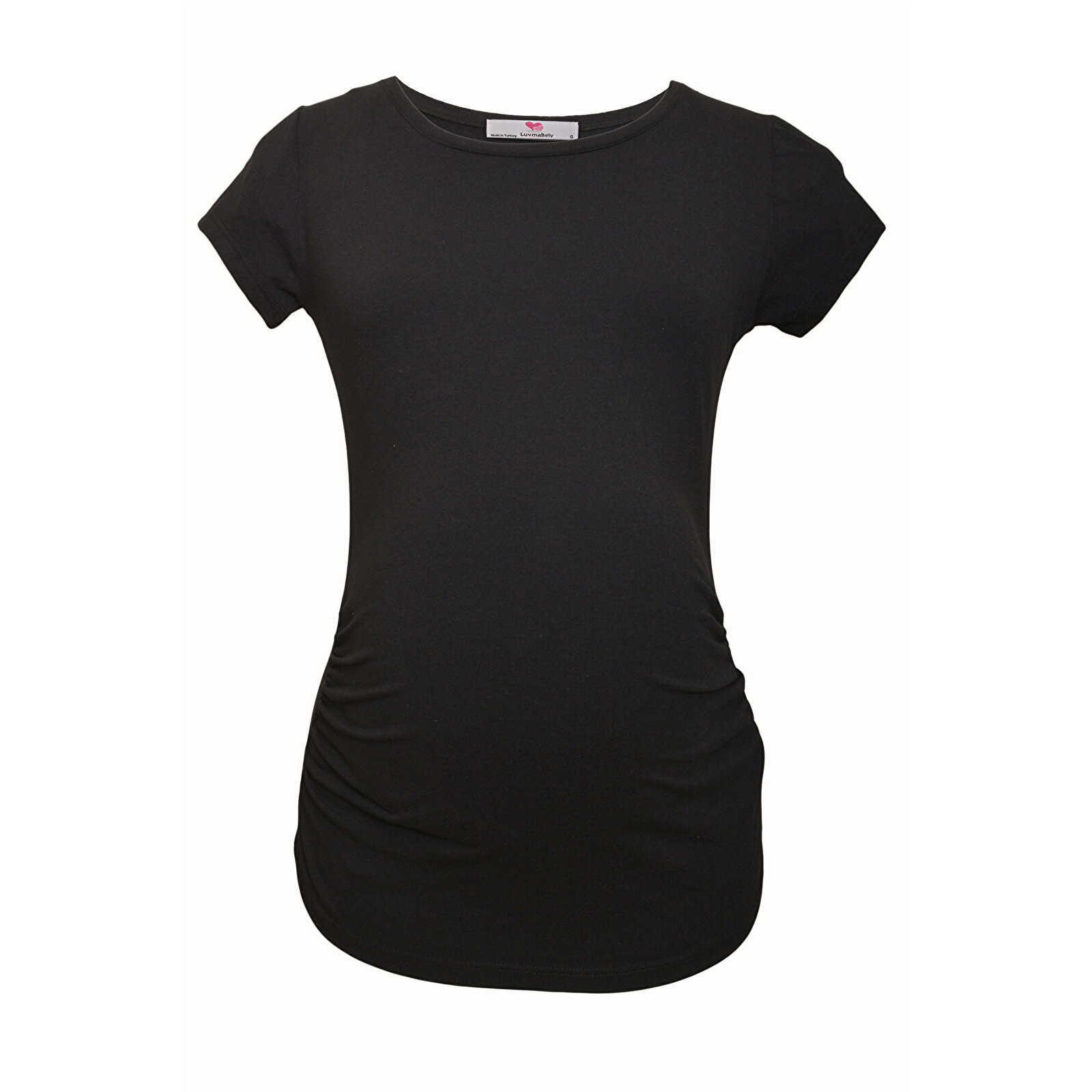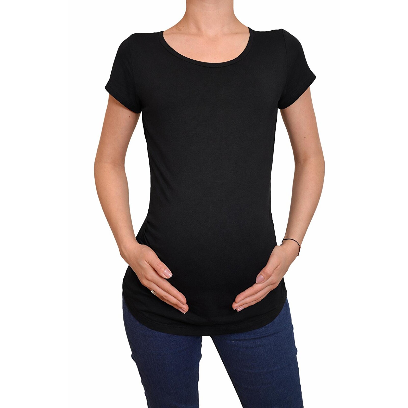 Siyah Bisiklet Yaka Kısa Kollu Kadın Hamile Tişört