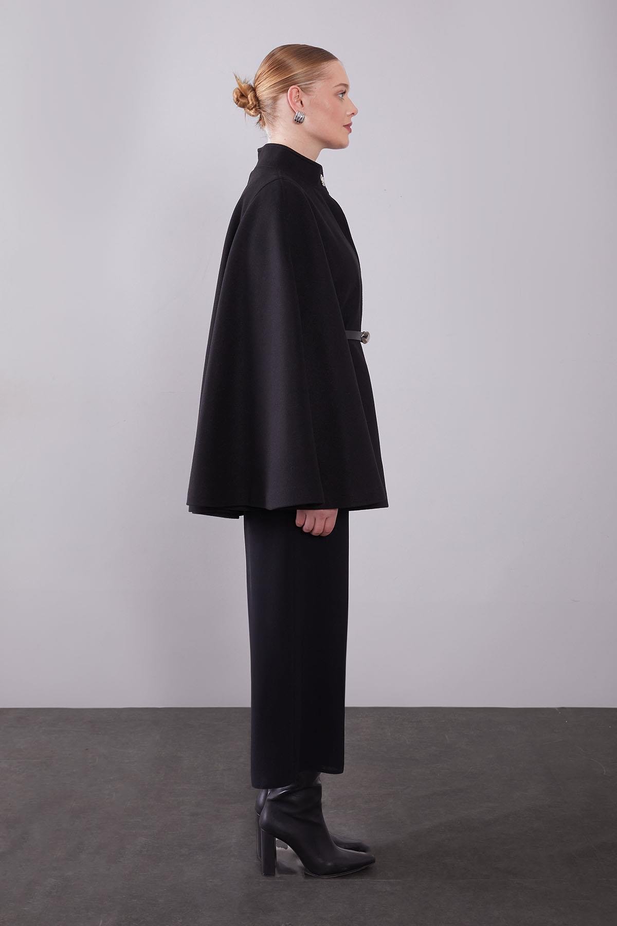 Siyah Gizli Kemer Detaylı Panço