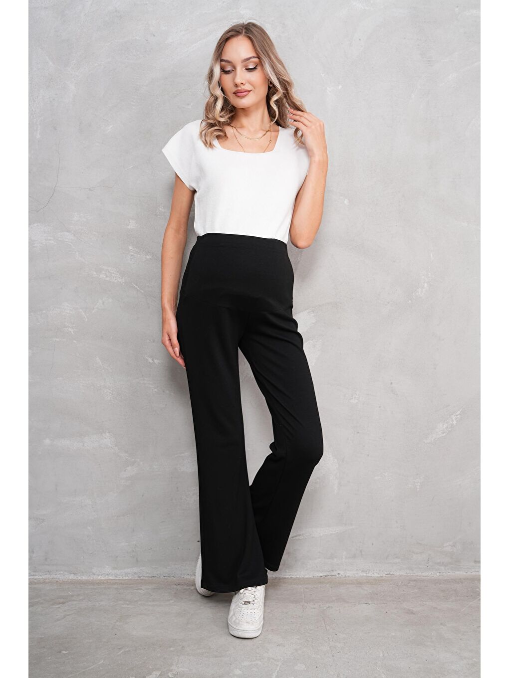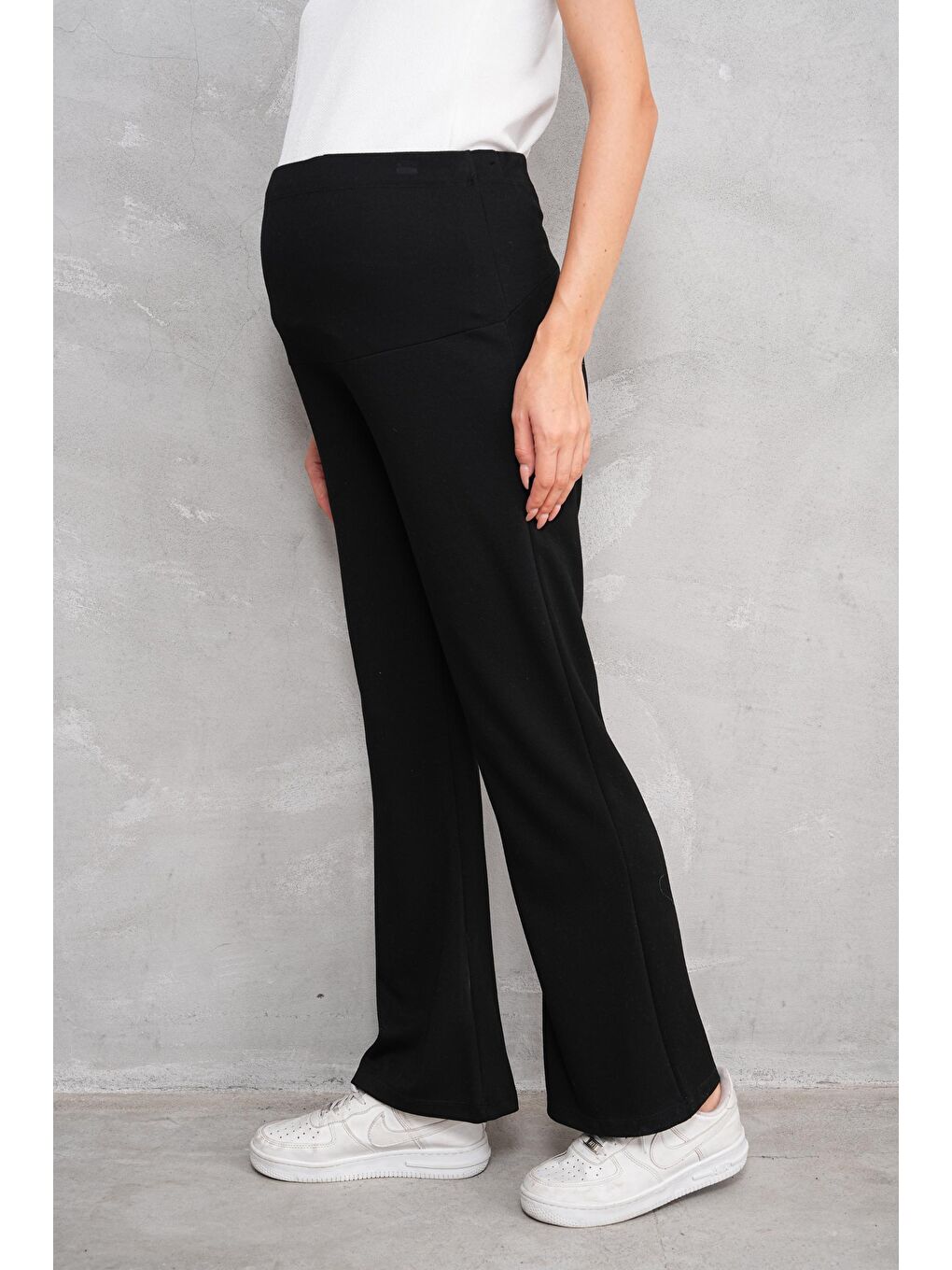 Siyah Hamile ve Lohusa İspanyol Paça Bel Ayarlanabilir Modal Kumaş Eşofman Altı