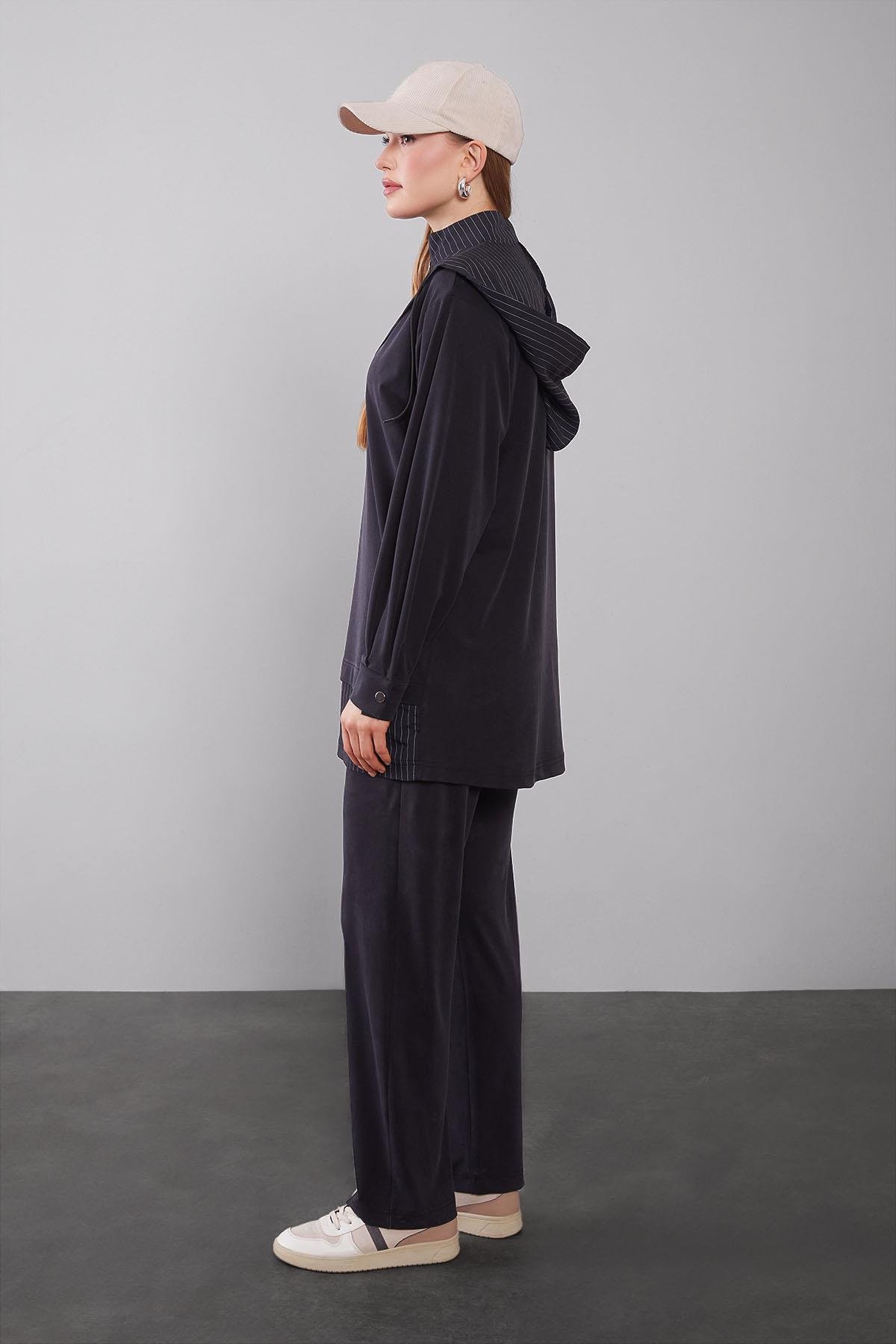 Siyah Kapüşonlu Çizgi Detay Sweat