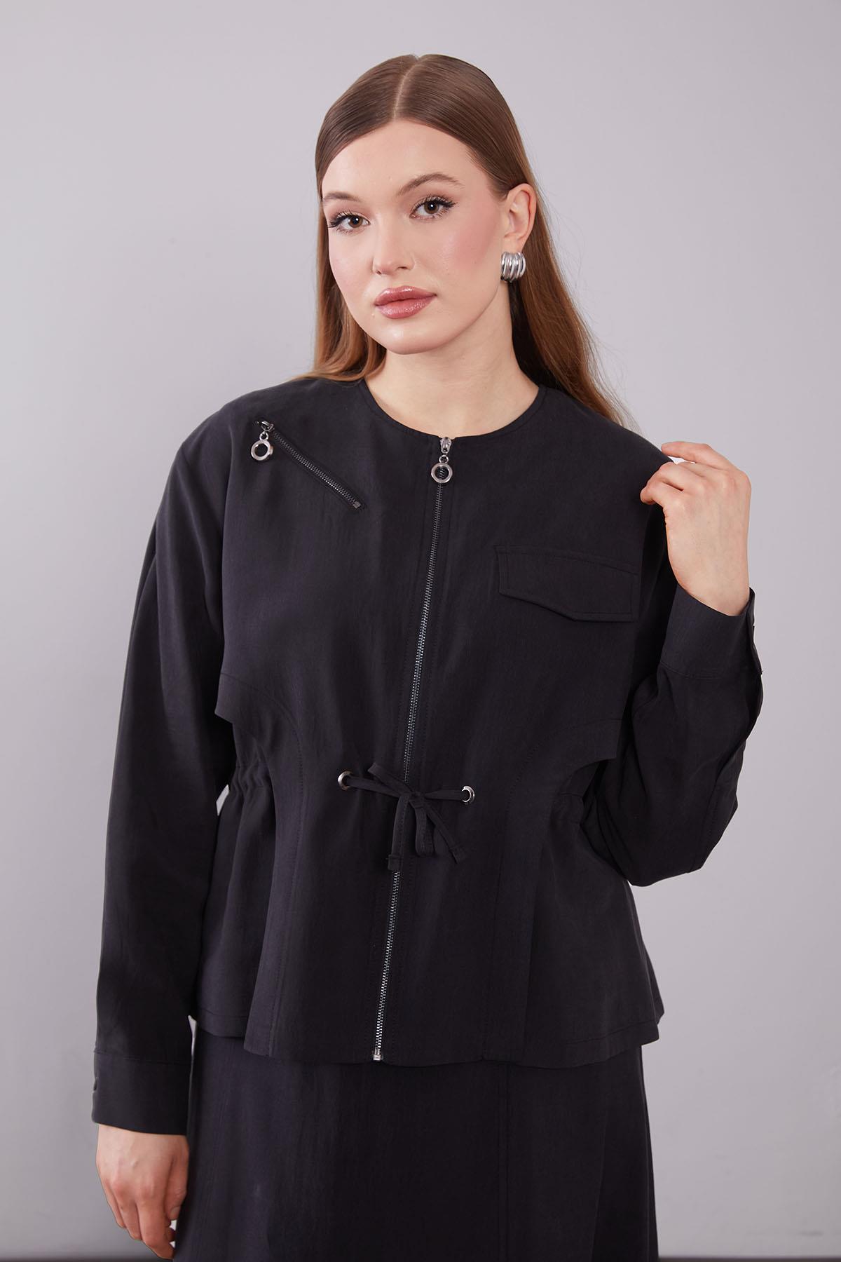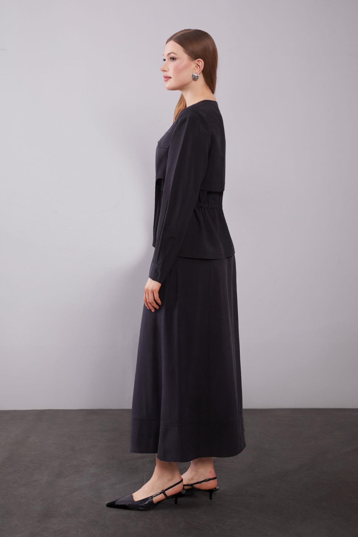 Siyah Omuz Fermuar Detaylı Etek Takım