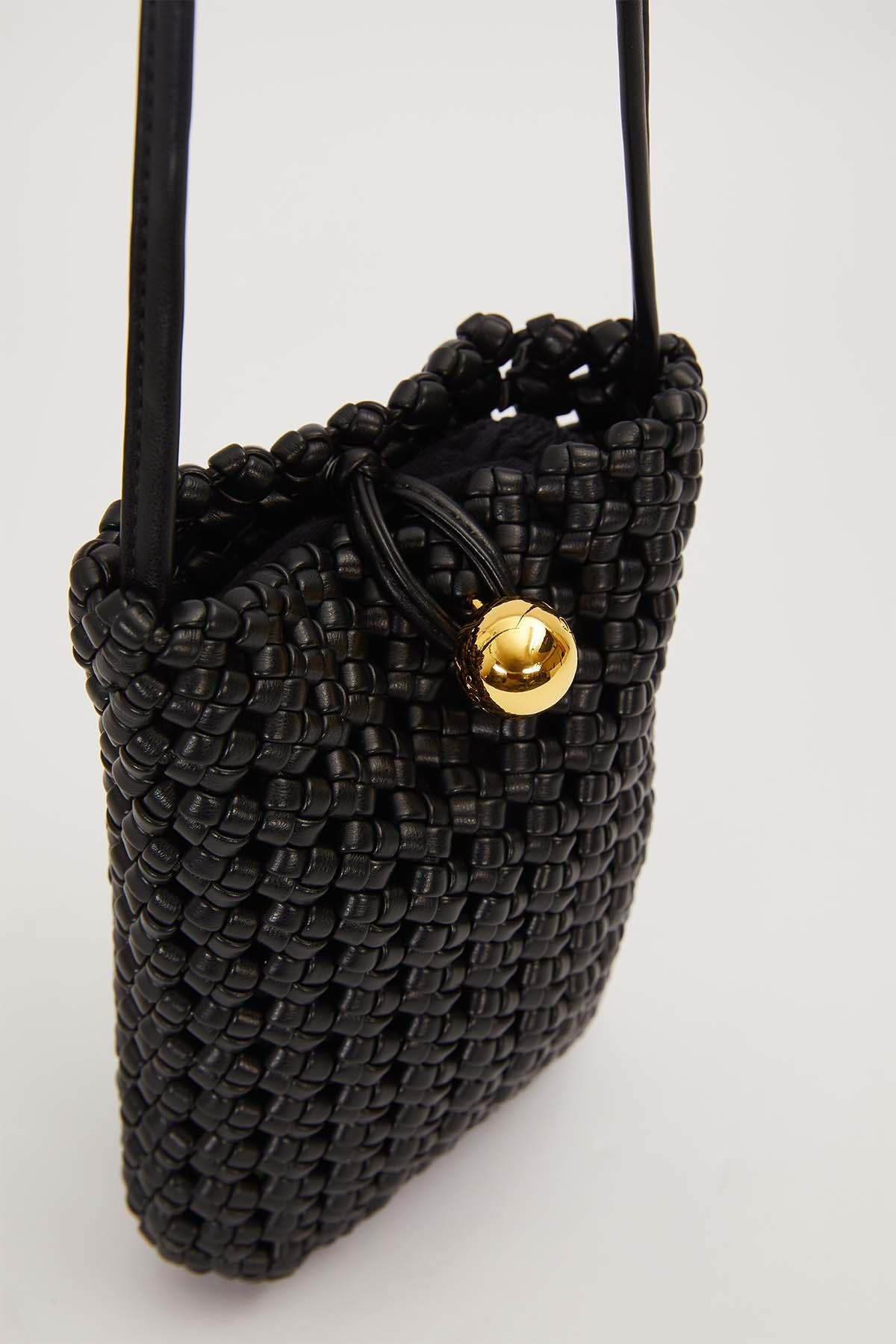 Siyah Örgü Model Gold Tokalı Omuz Çantası