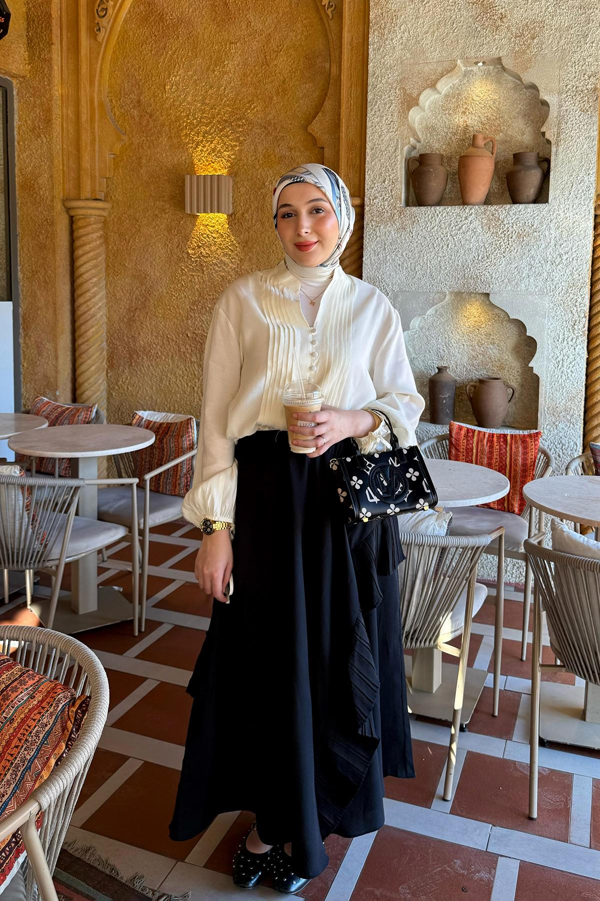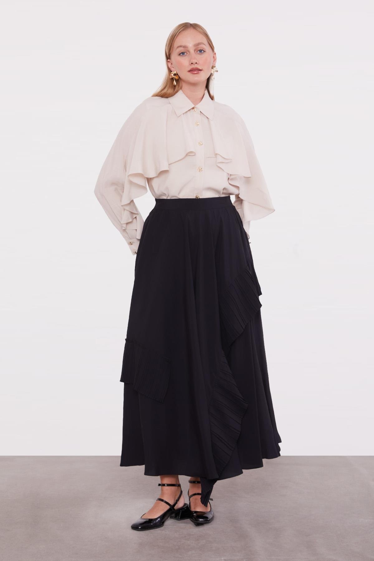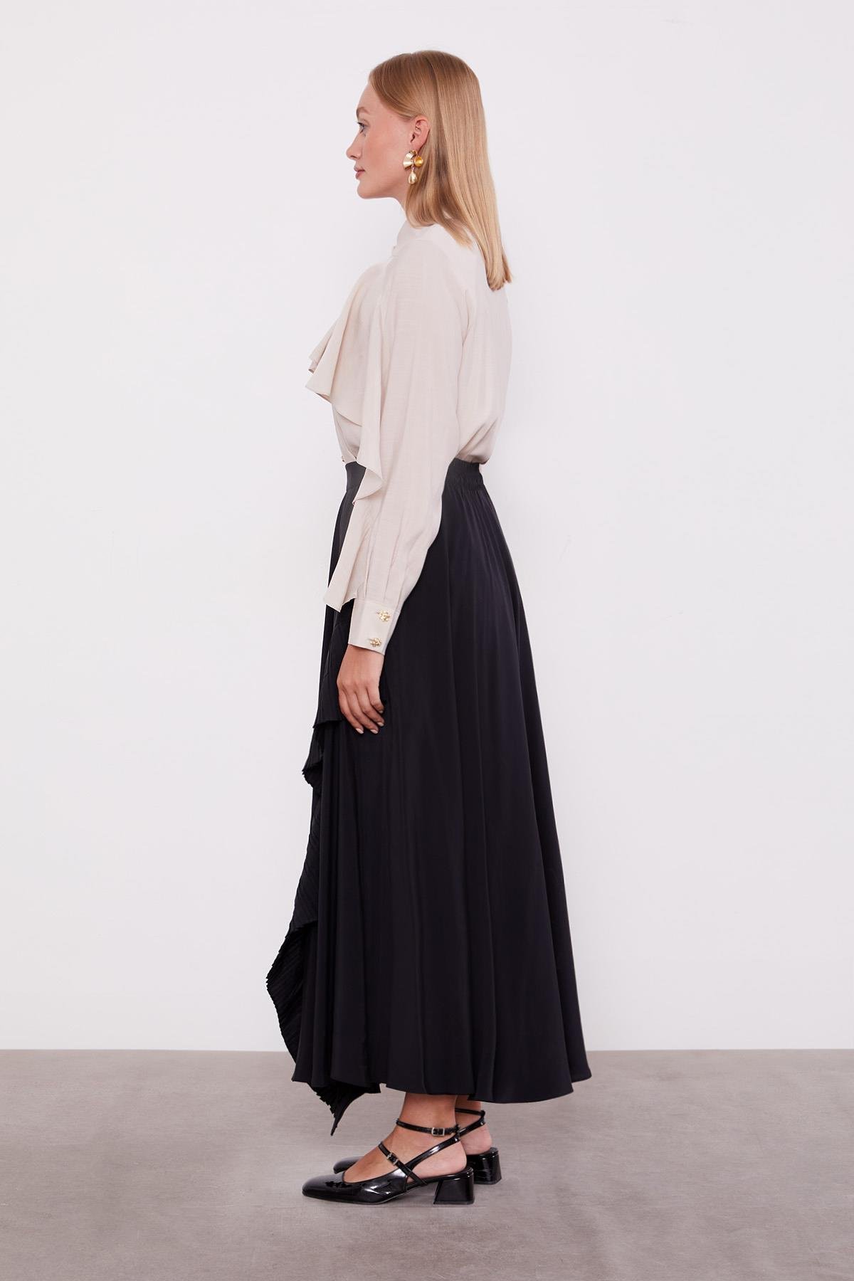Siyah Pilise Detaylı Etek