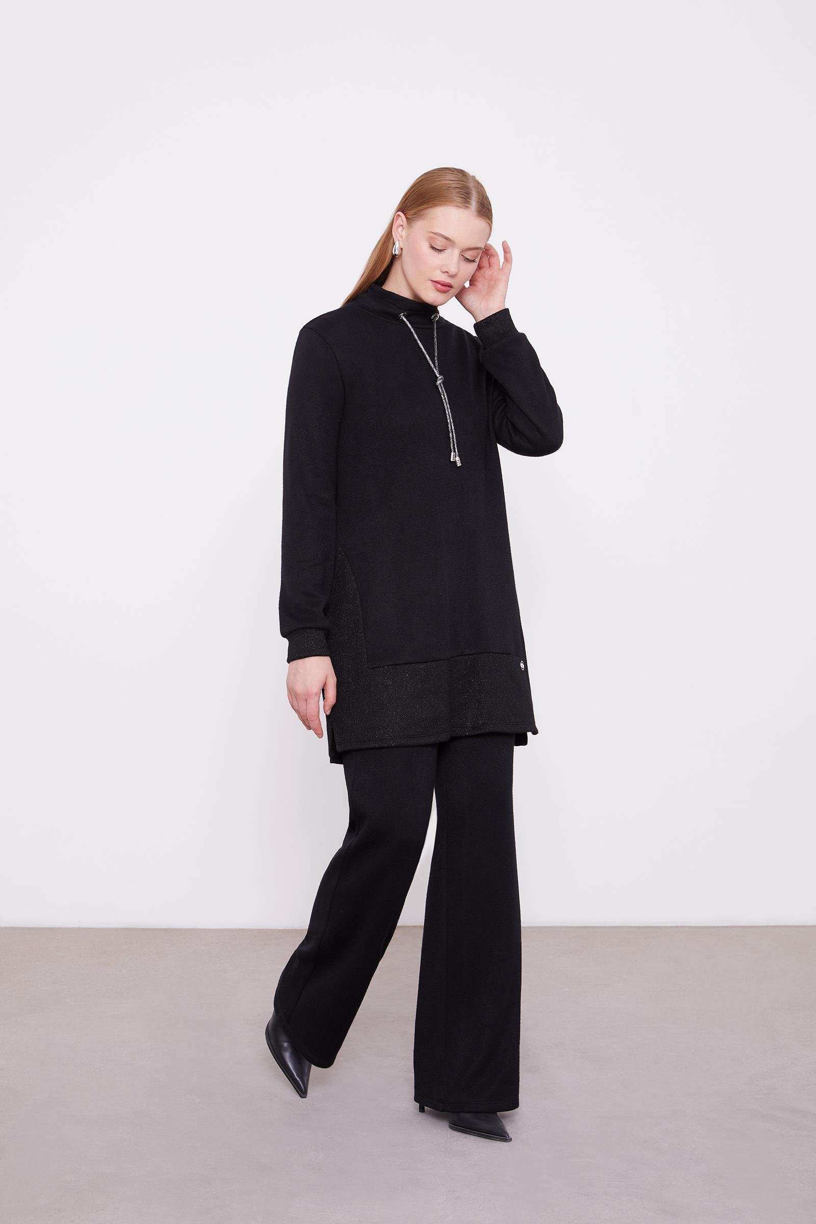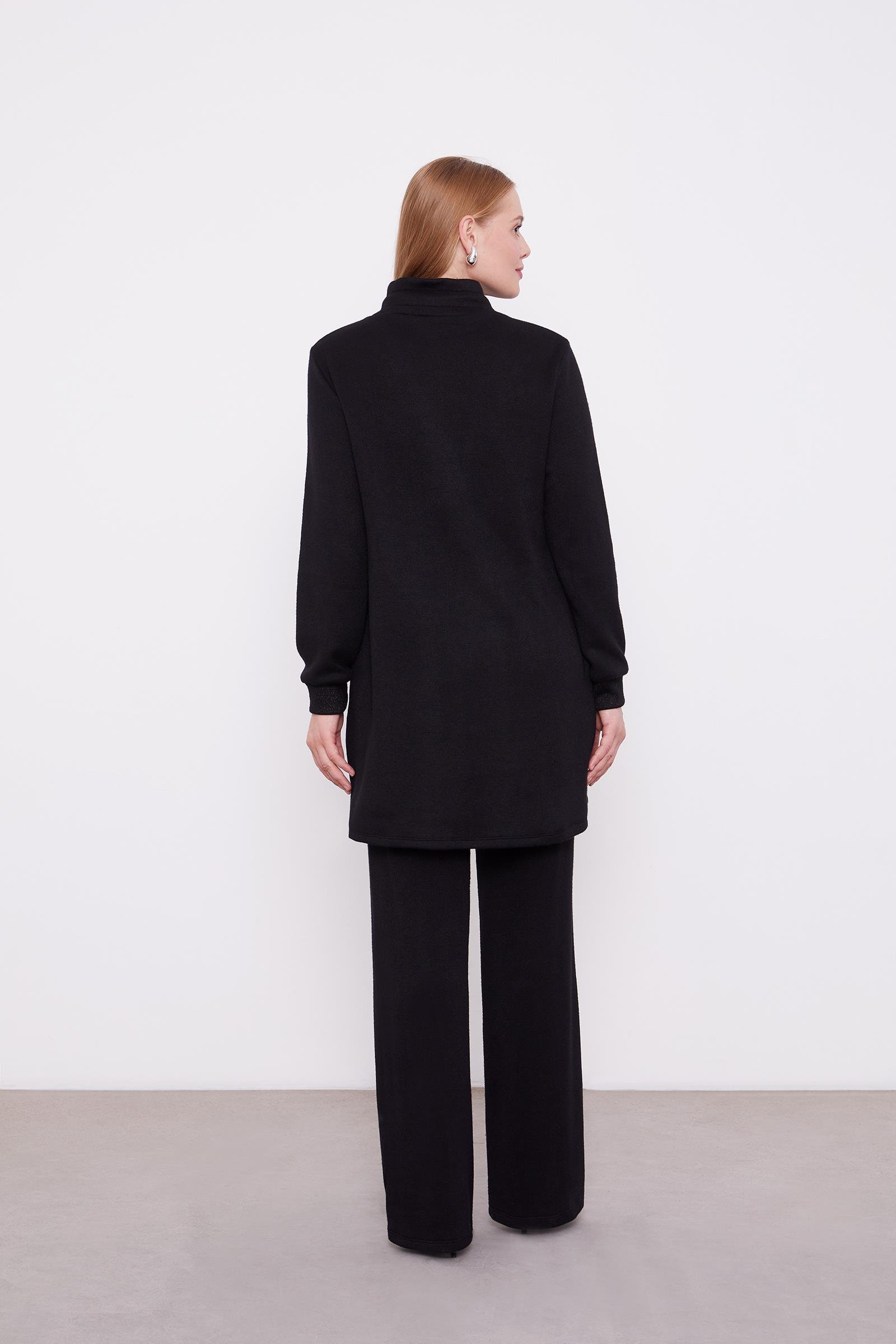 Tunik ve pantolonun uyumlu siluetiyle öne çıkan bu takım, aplike cep detaylarıyla sade tasarıma sofistike bir karakter kazandırır. Akıcı kumaşı gün boyu konfor sağlarken, modern çizgisi şehir stiline güçlü ama yalın bir dokunuş ekler.
