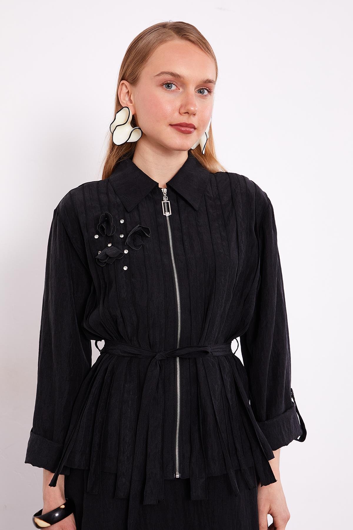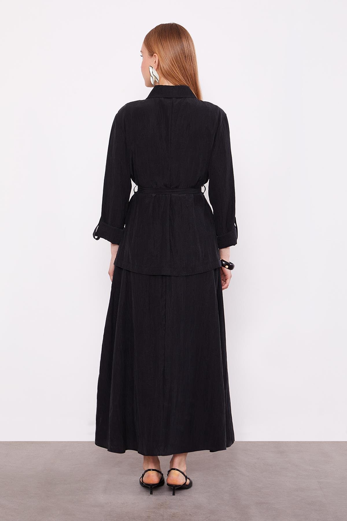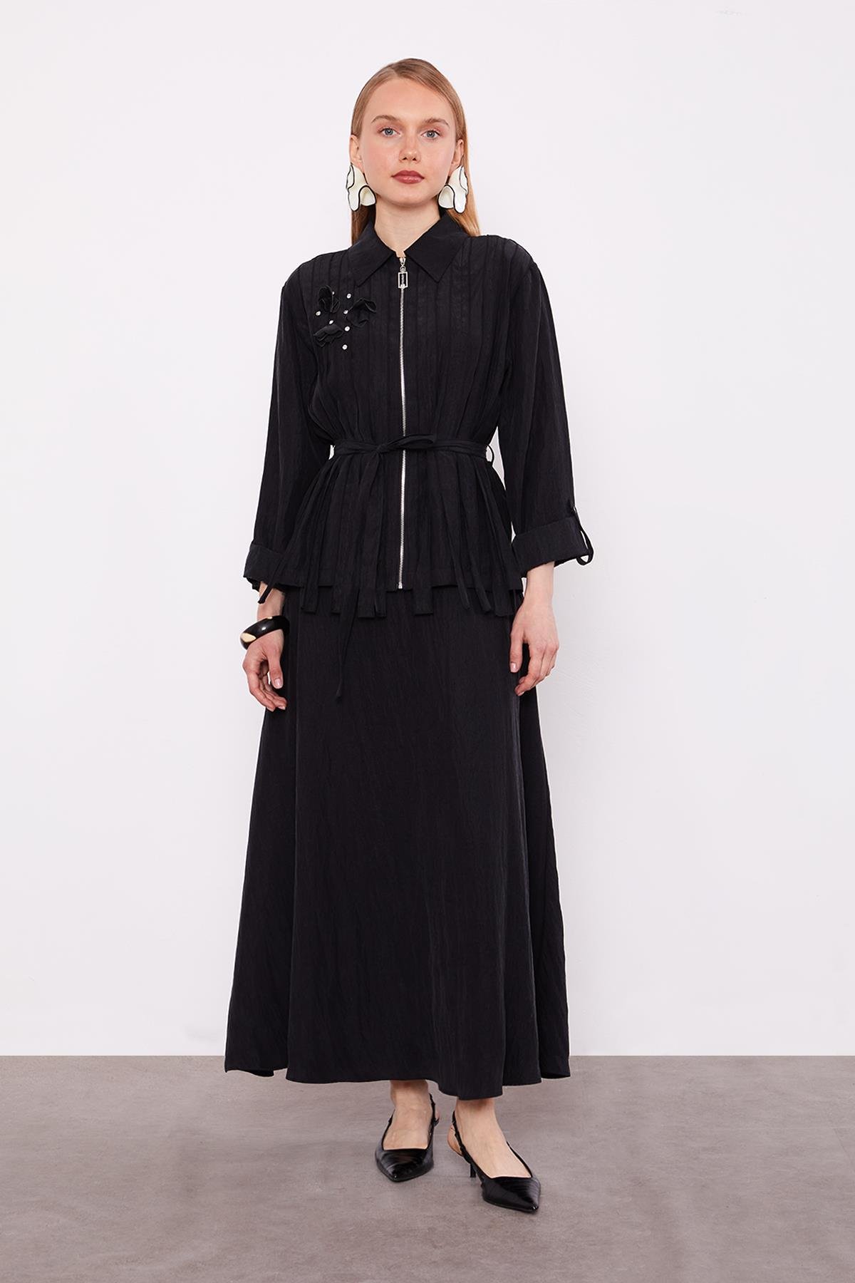 Siyah Yakası Taş Detaylı Cupra Etek Takım