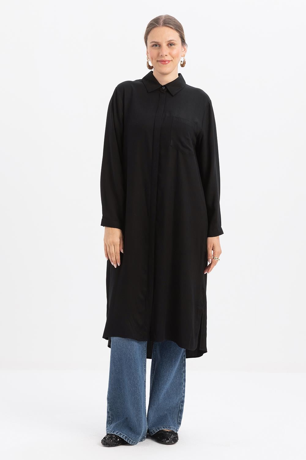 Siyah Yırtmaçlı Uzun Gömleğimiz ile modern ve rahat bir stil yakalayın. ALLDAY’in Gömlek kategorisindeki diğer modelleri keşfedin. Kıyafetinizi Siyah Yırtmaçlı Uzun Gömlek ile tamamlamak için hemen keşfedin!