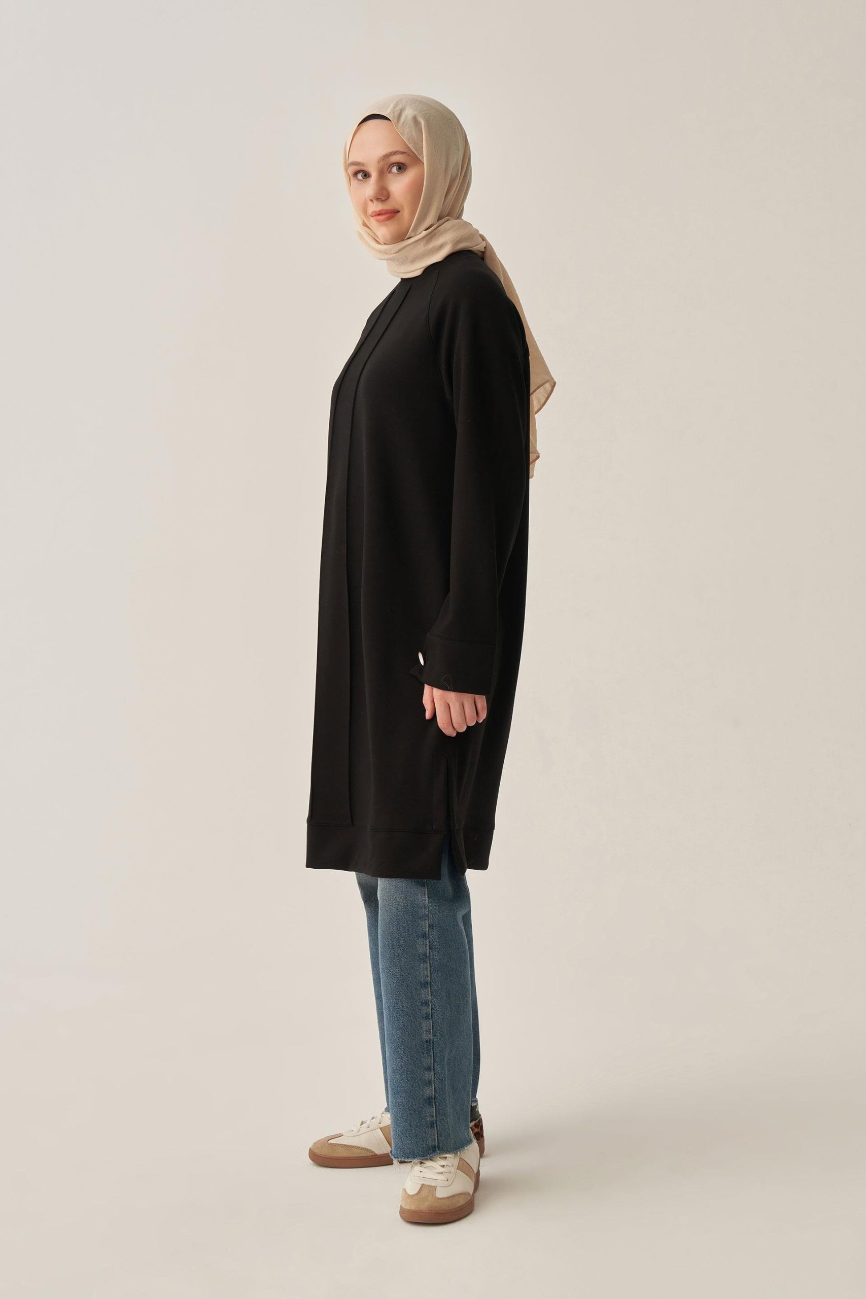 Şıklığı detaylarda arayanlara özel Siyah-Yumuşak Dokulu Nervürlü Tunik le zarif bir görünüm yakalayın. Günlük ve özel kombinler için ideal tasarım ALLDAY’de!