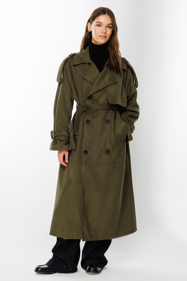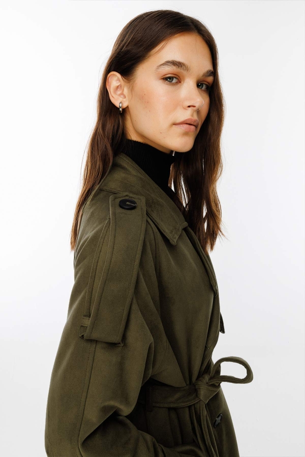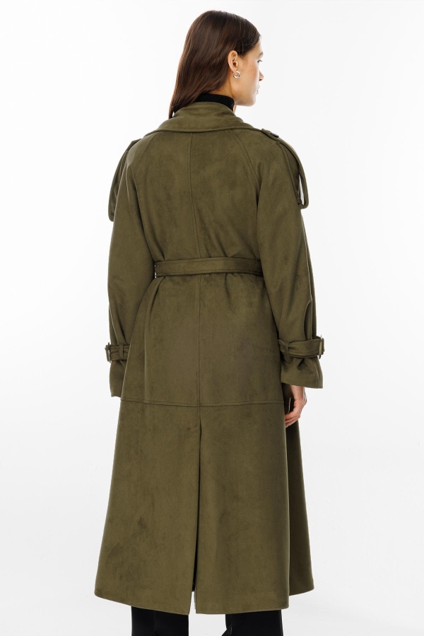 Süet Haki Trençkot