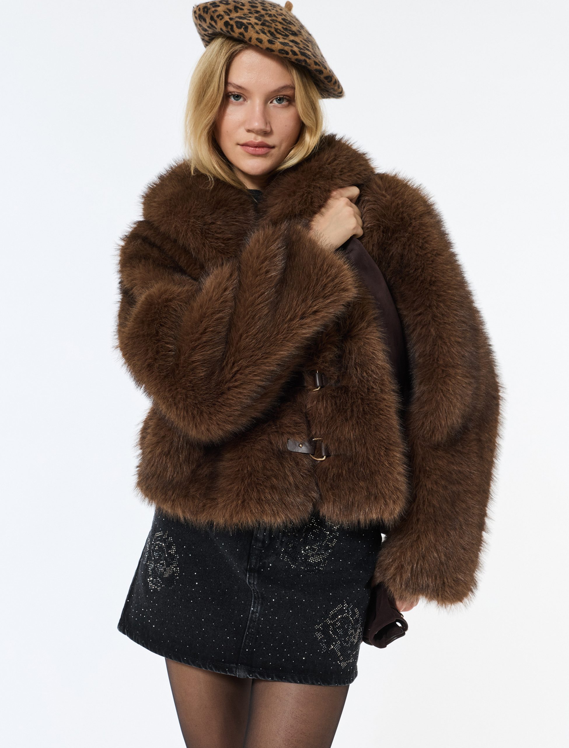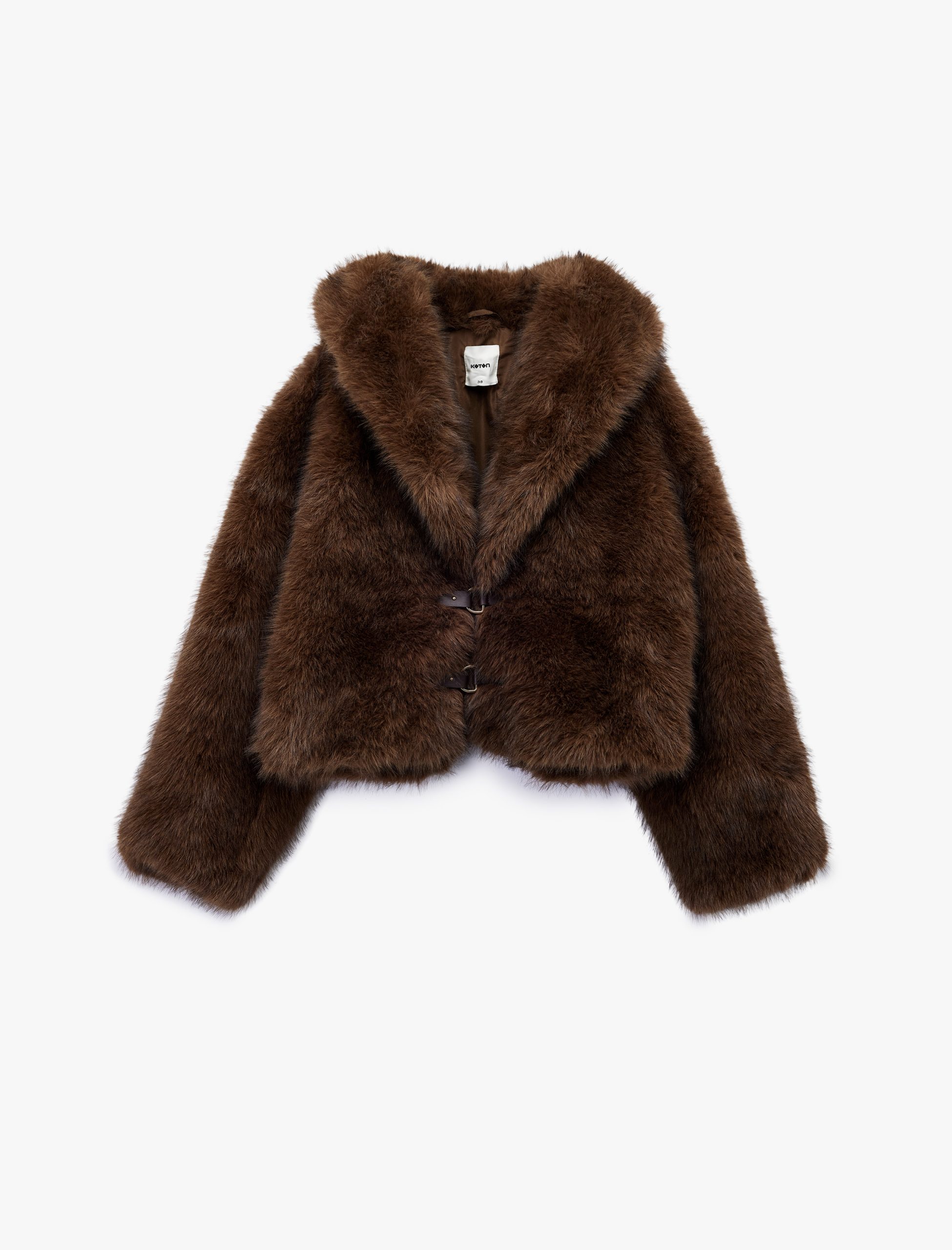 Suni Kürk Mont Uzun Kollu Kruvaze Crop