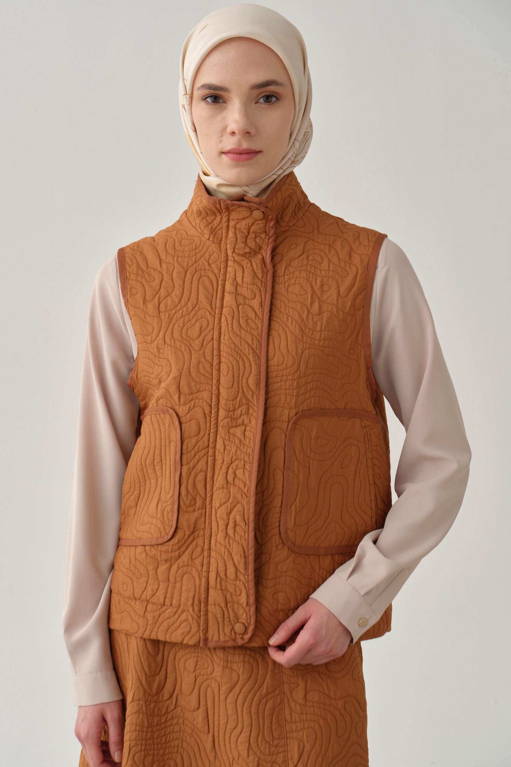 Tarçın Rengi Grograin Piped Kısa Yelek