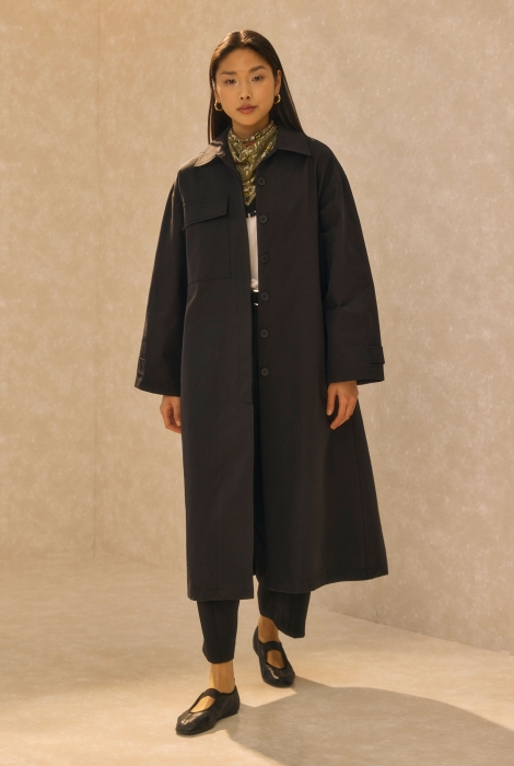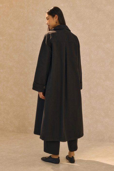 Tek Cep Detaylı Uzun Trençkot Siyah