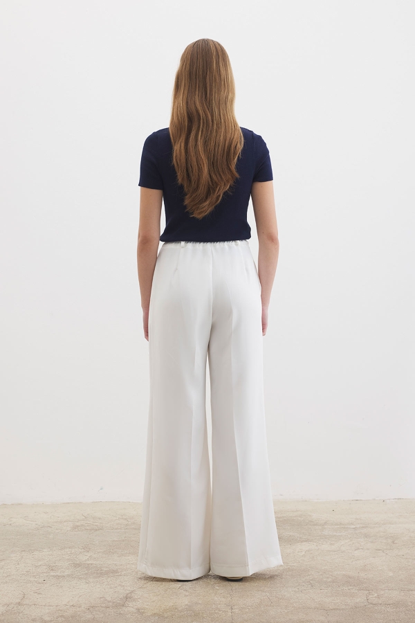 Bej-Beli Lastikli Palazzo Modal Pantolon
