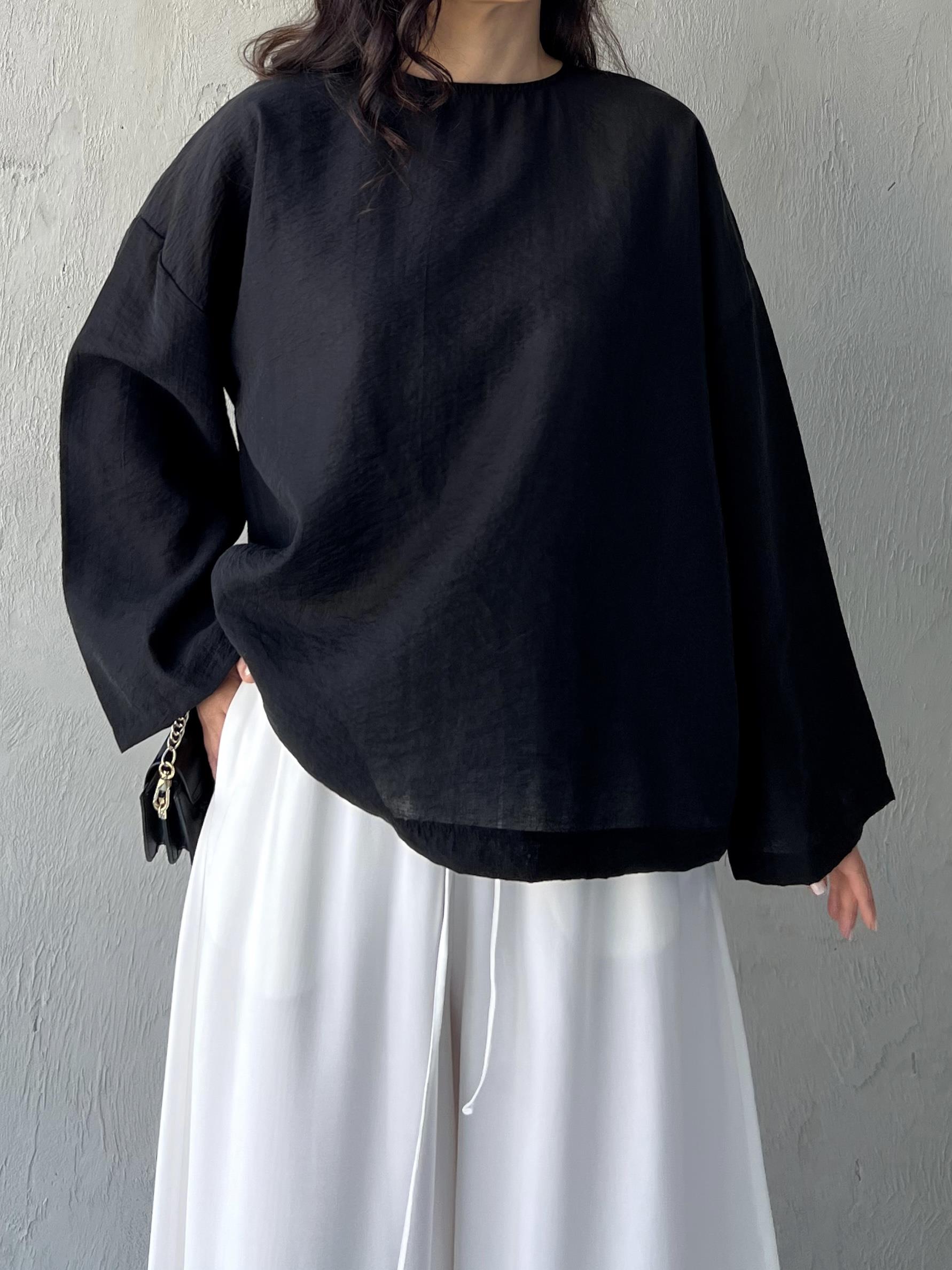 Temel Siyah Keten Gömlek
