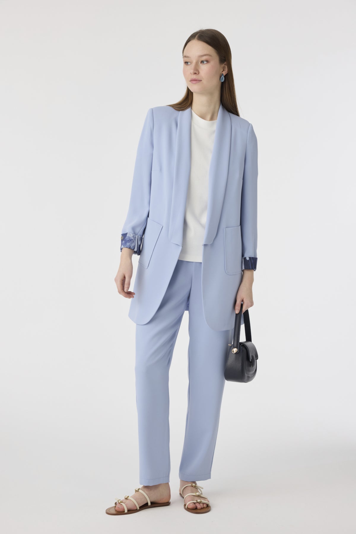 Tunik ve pantolonun uyumlu siluetiyle öne çıkan bu takım, aplike cep detaylarıyla sade tasarıma sofistike bir karakter kazandırır. Akıcı kumaşı gün boyu konfor sağlarken, modern çizgisi şehir stiline güçlü ama yalın bir dokunuş ekler.