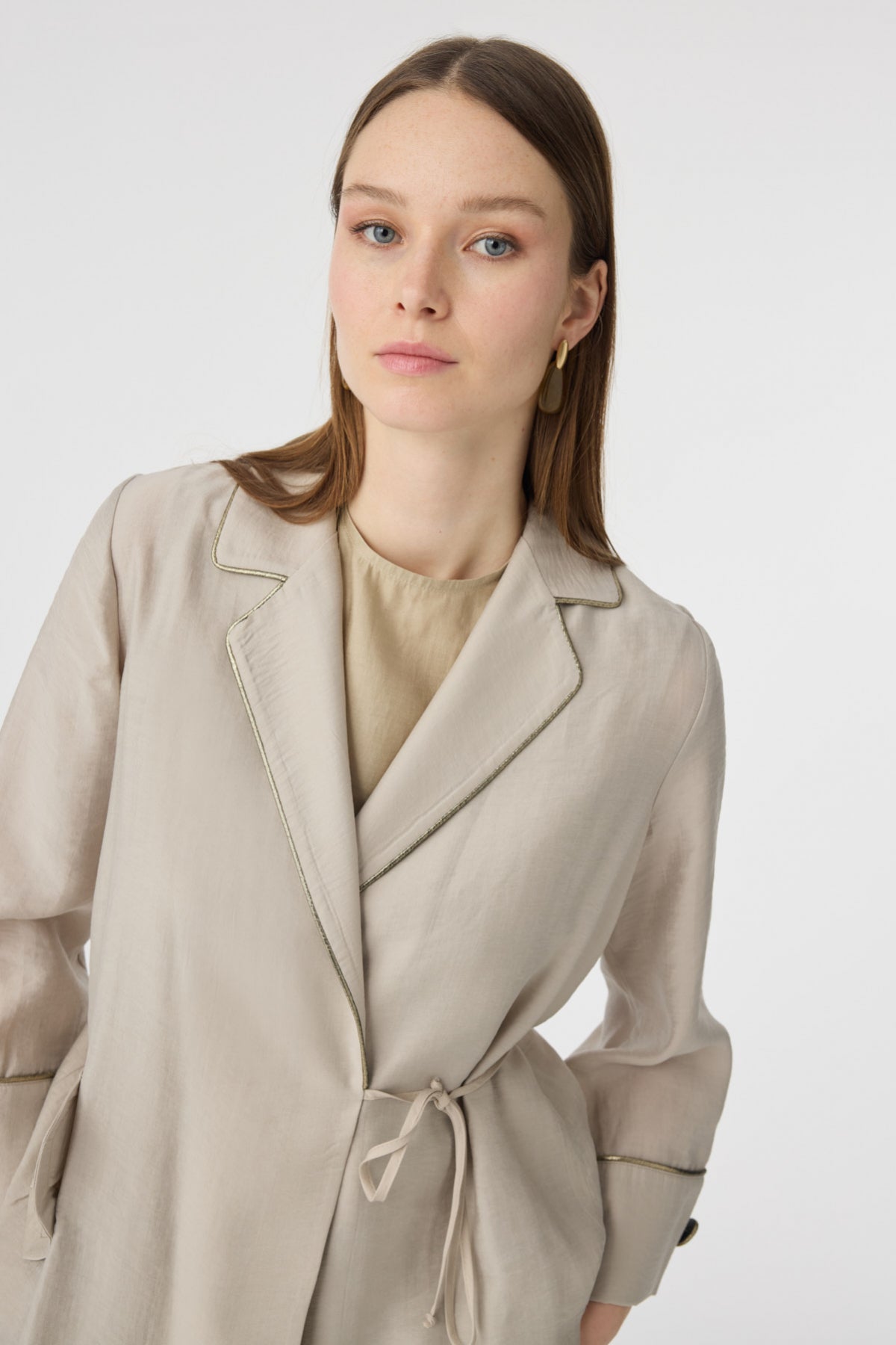 Kapitone dokusuyla sıcaklık ve yapı kazanan bu takım, ceket ve etek uyumuyla sofistike bir siluet oluşturur. Modern kesimiyle şehir stiline zarif bir dokunuş katarken, rahat kalıbı sayesinde gün boyu konfor sağlar.