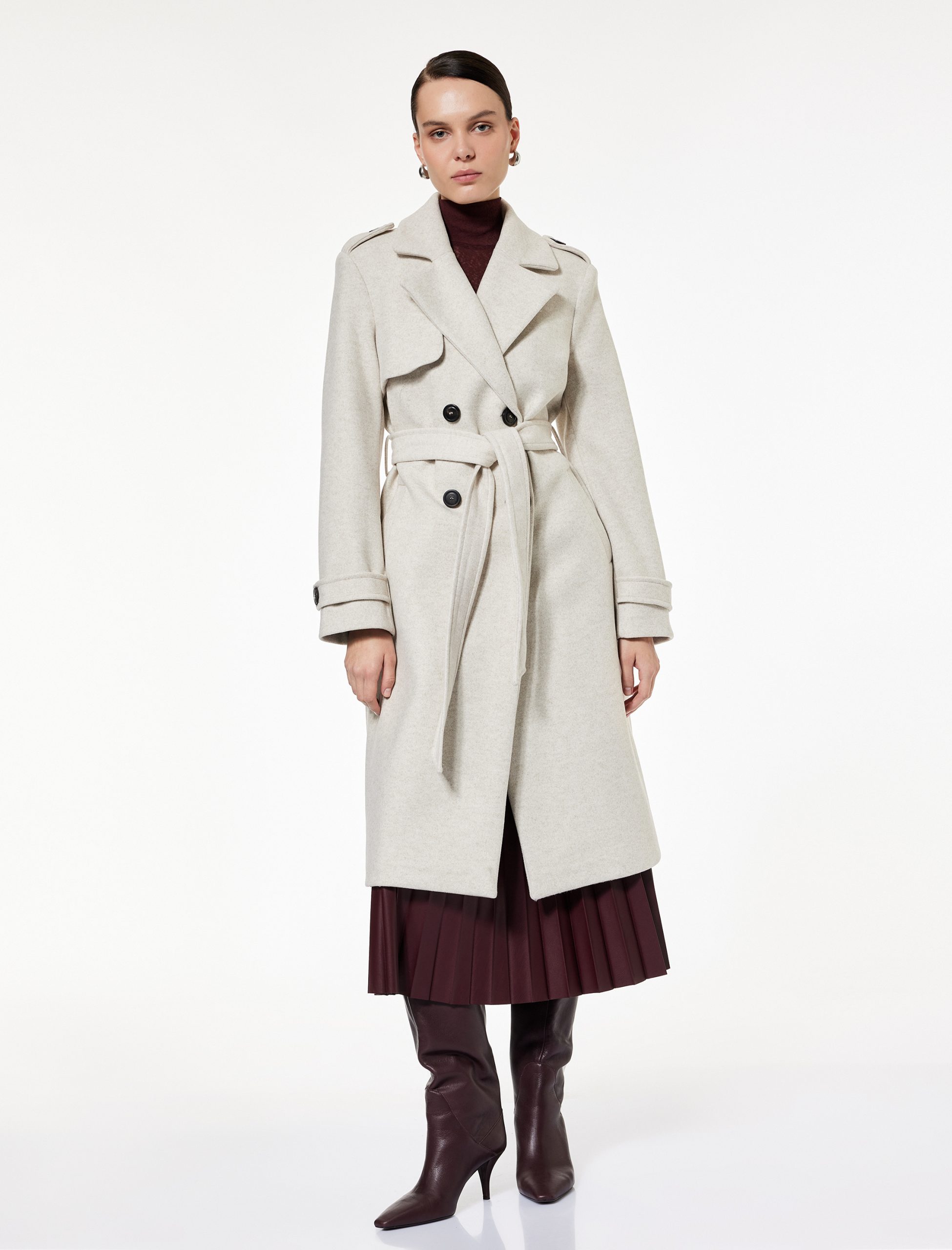 Trenç Kaban Kaşe Uzun Kollu Kruvaze Kemerli