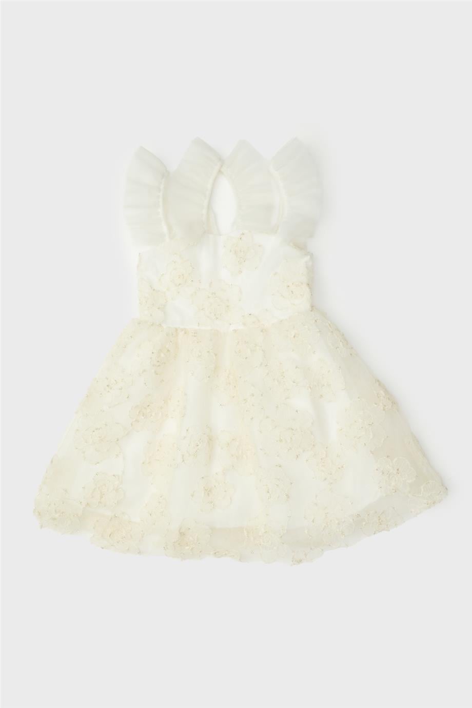 Tyess Kız Çocuk Ekru Tüllü Abiye Elbise
