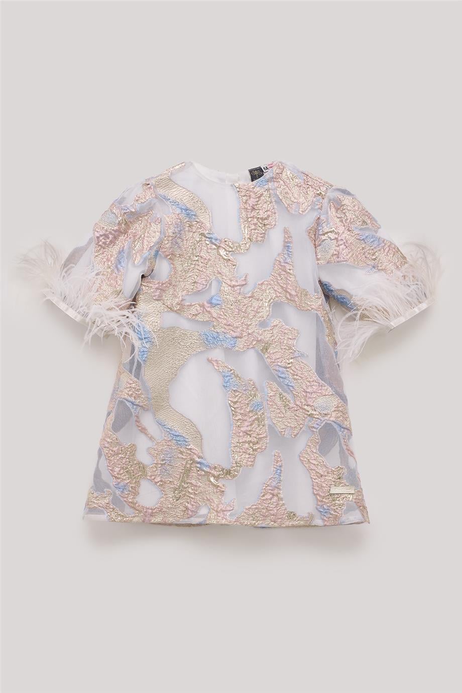 Tyess Kız Çocuk Tüy Detaylı Simli Elbise