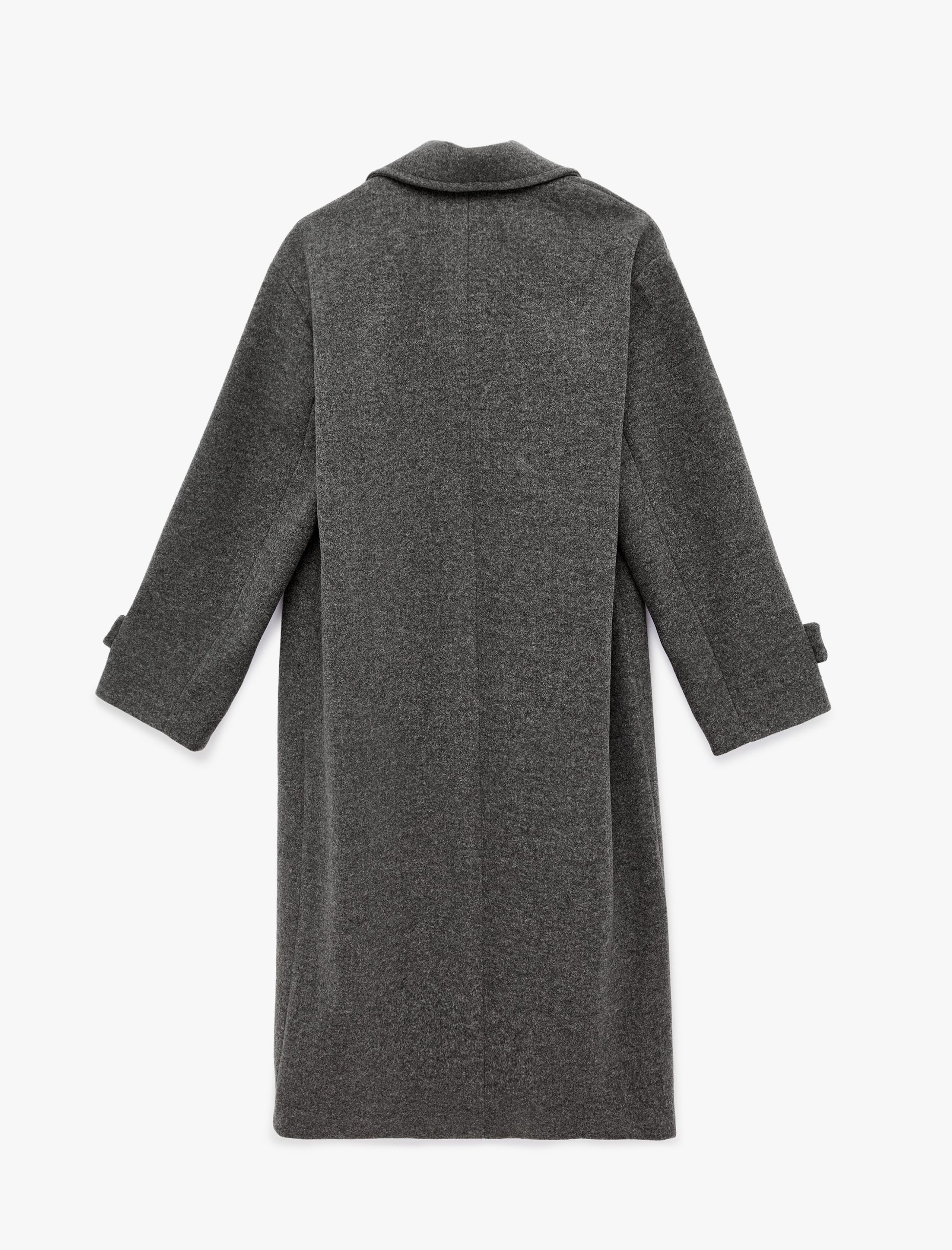 Uzun Kaşe Kaban Kruvaze Uzun Kollu Düğmeli Cepli