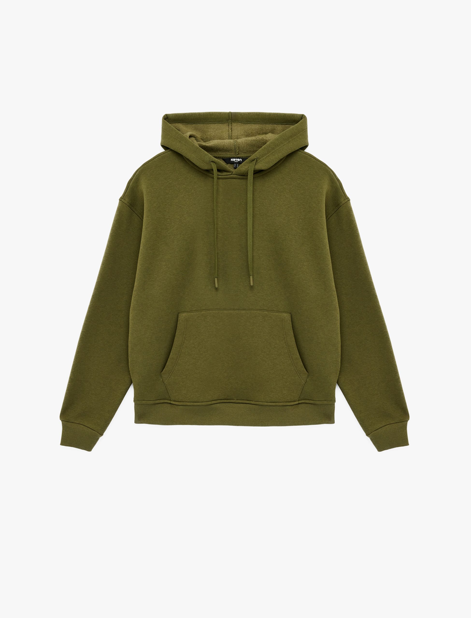 Uzun Kollu Cepli Kapüşonlu Oversize Sweatshirt