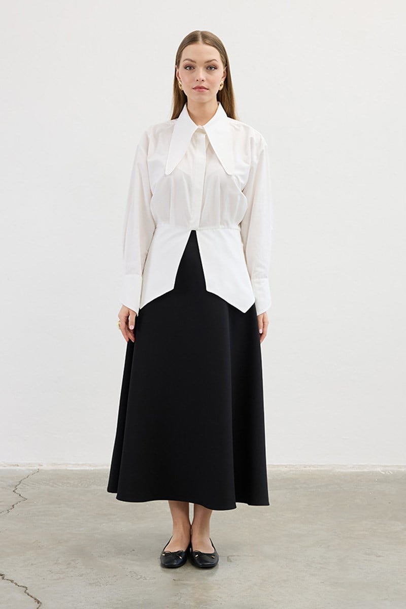 Uzun Yakalı Gömlek Ekru