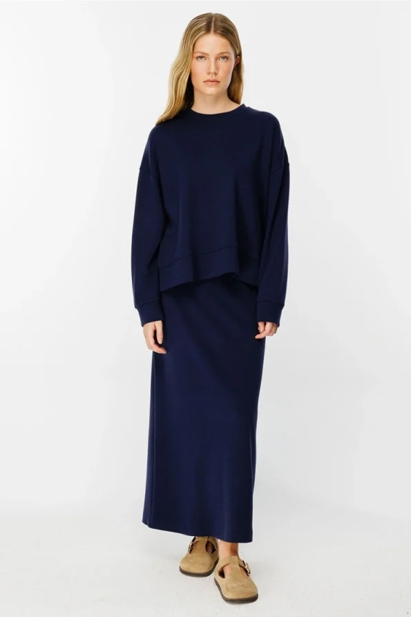 İspanyol Kol Pamuklu Lacivert Sweatshirt