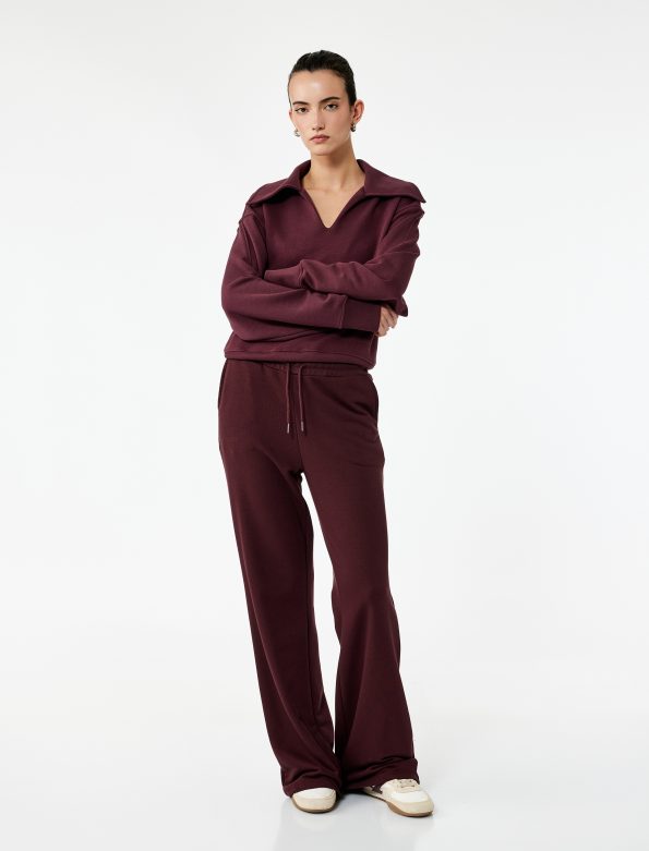 Basic Oversize Bordo Pantolon Takım