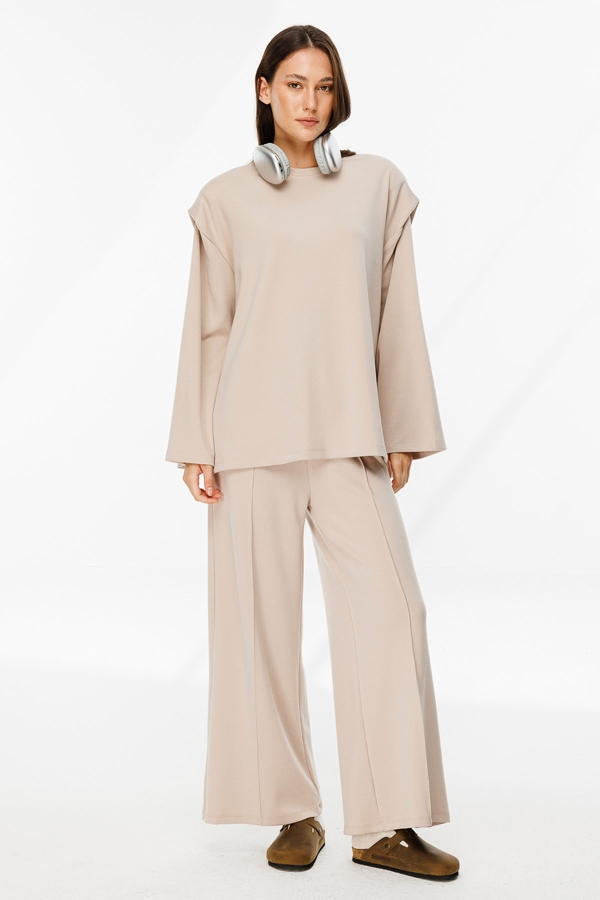 Vatkalı Compact Pamuk Taş Sweatshirt